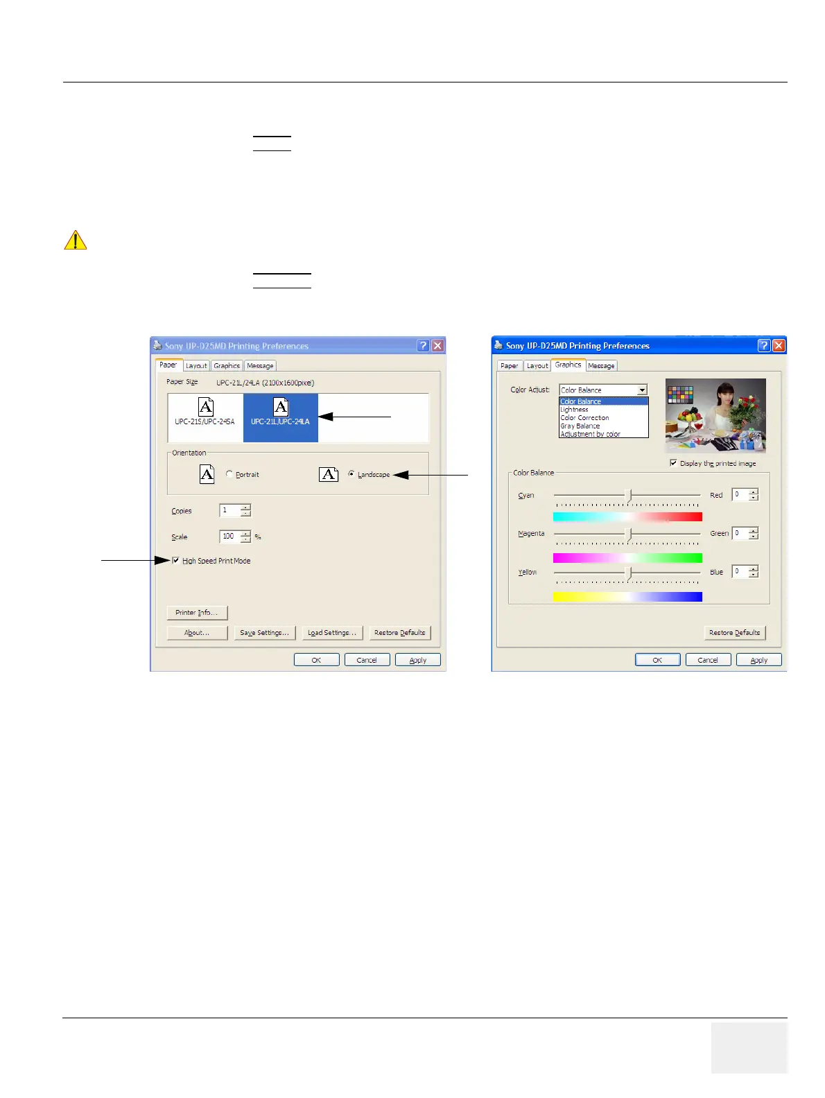 1.) Call up the ‘Printer Preferences’; operation see: Section 3-7-4 "Adjustment of Printer Settings".