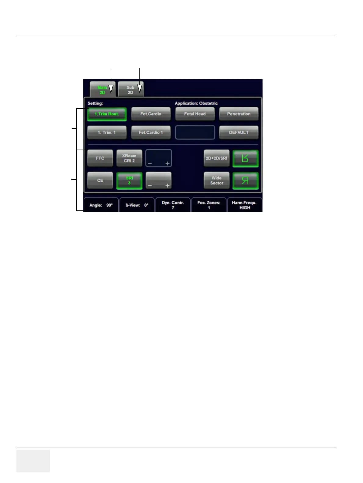 2.) Sub menu key: the “Sub menu” (to adjust settings of the selected “Main” mode) is displayed