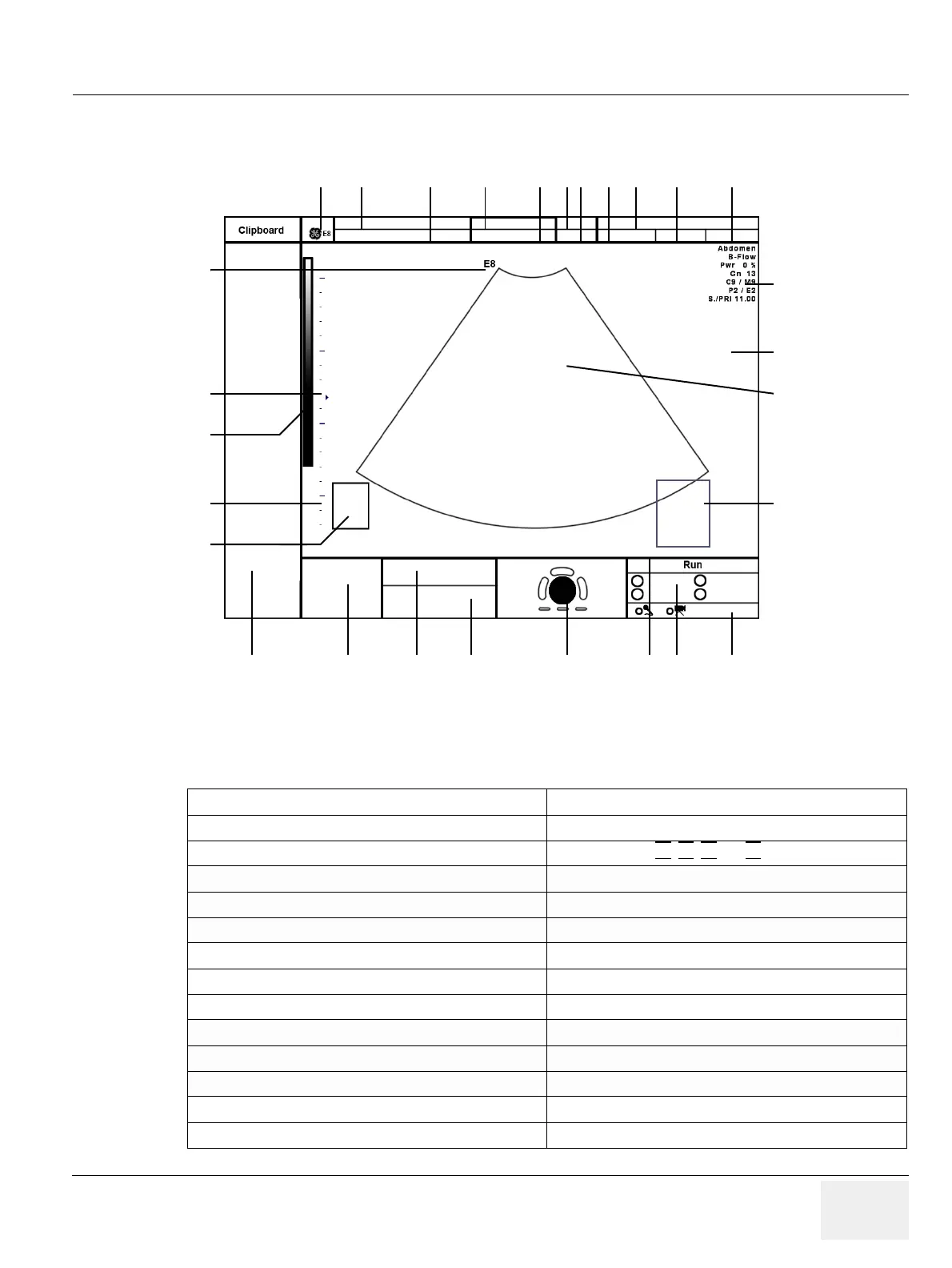 4. Probe / Application 18. Status area of current operation state (Freeze/Run/Cine)