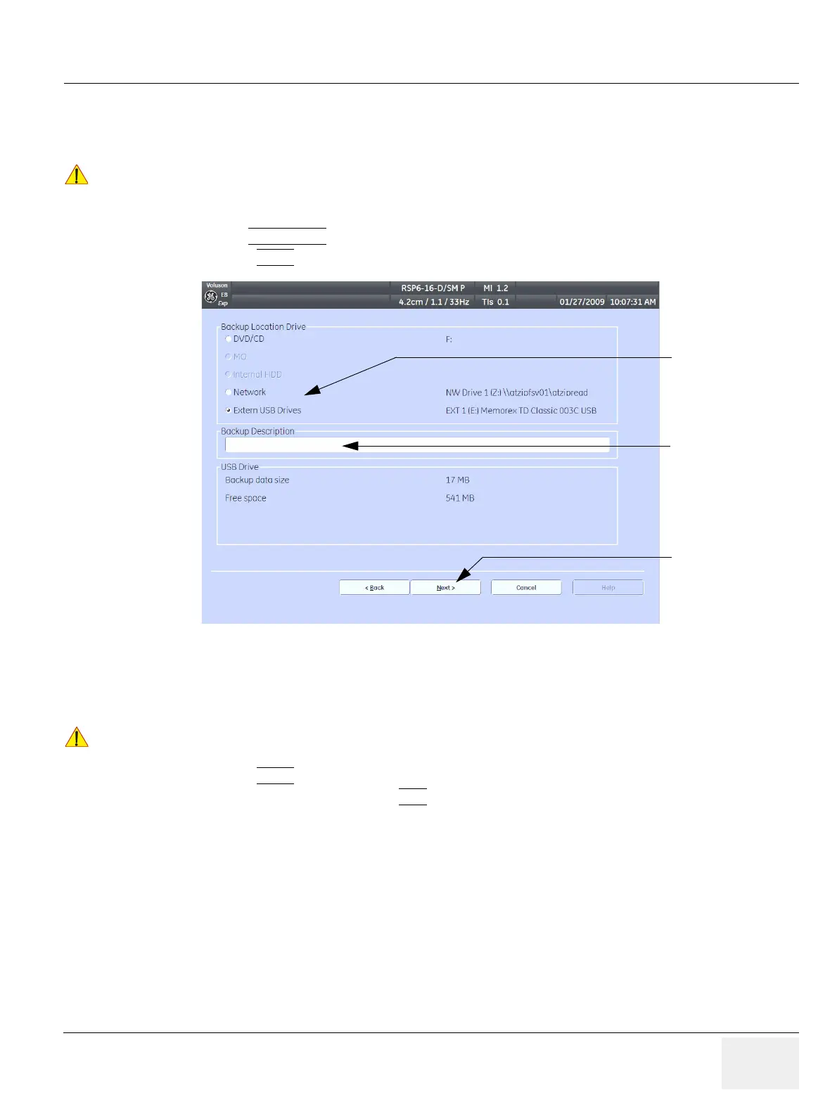 Voluson E8 / Voluson E6 presets, configurations and image settings will not be backed up! To
