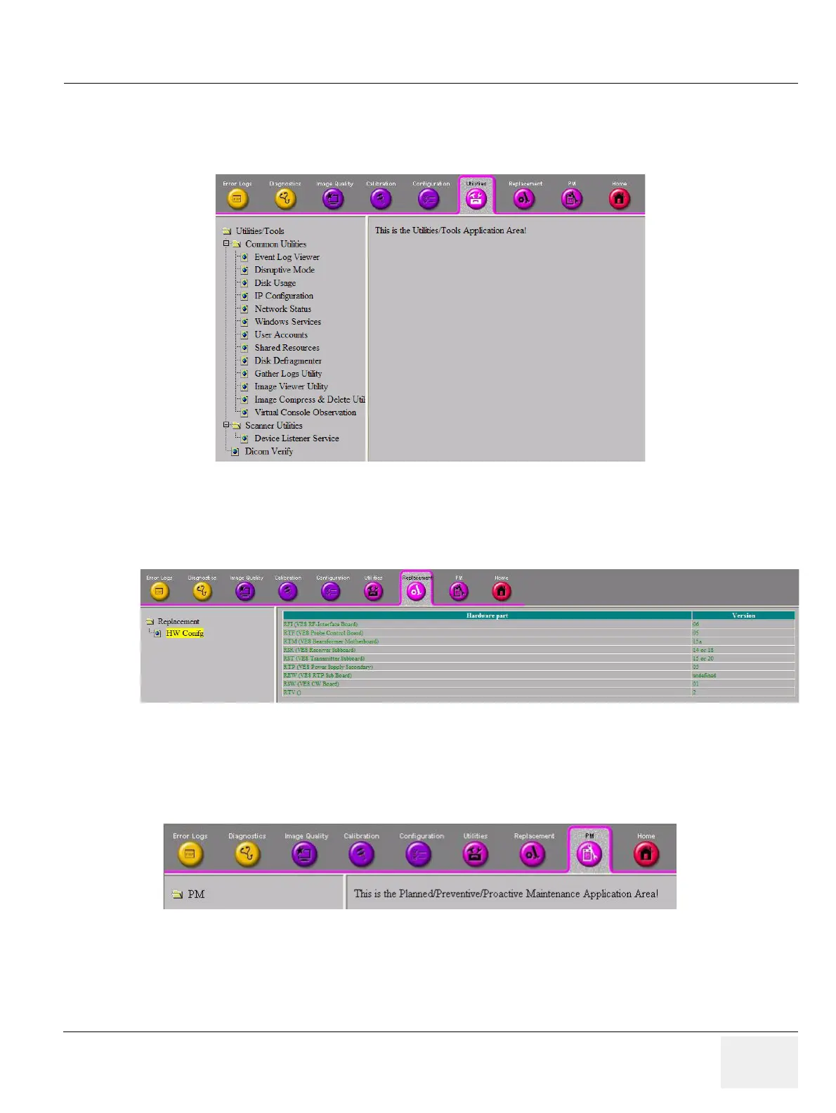 The Utilities page contains a variety of Windows utility tools to indicate the status of the system,