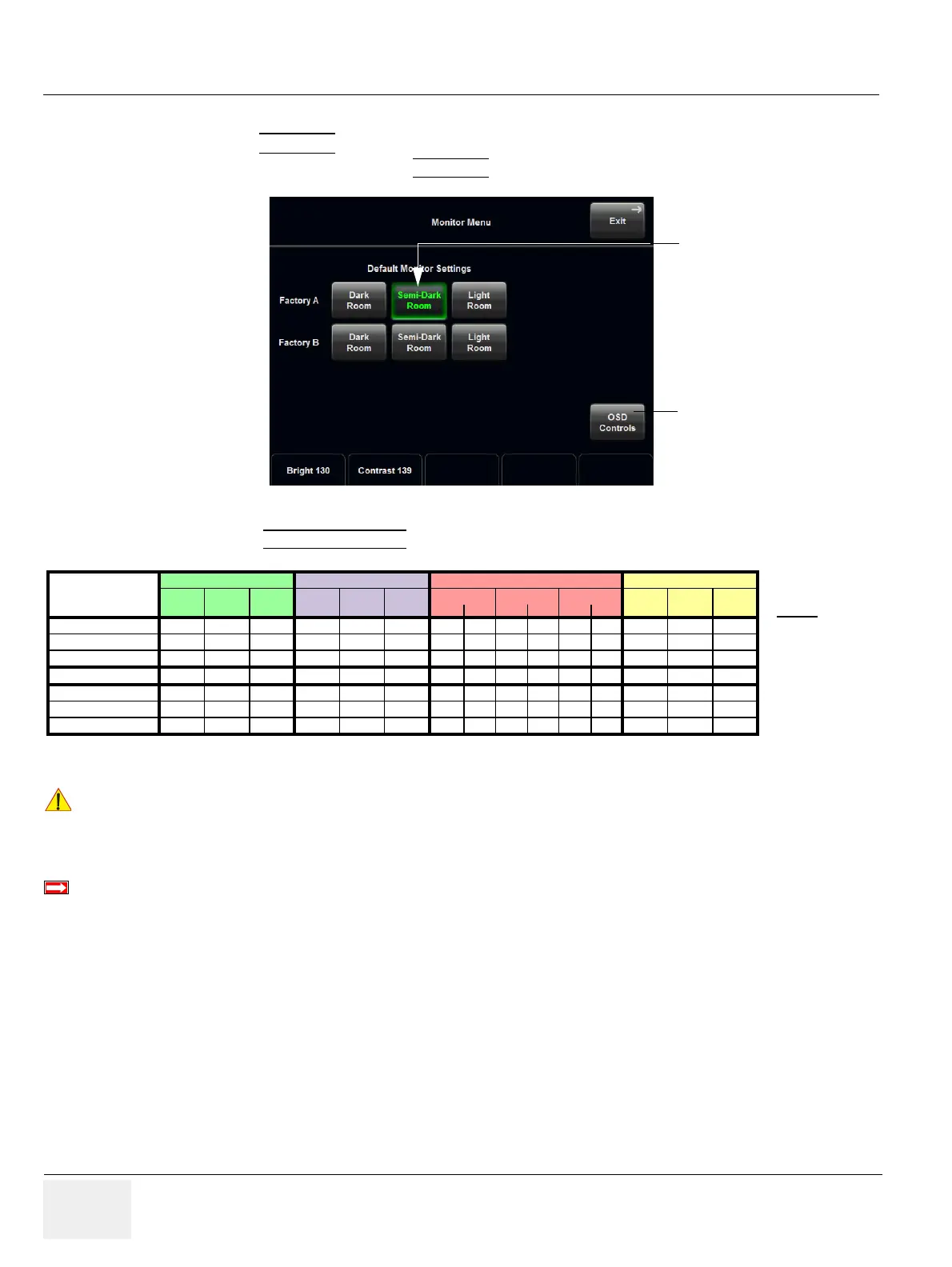 NOTE: All changed values will only be saved by selecting “OK” and “Exit” from the Monitor Menu.