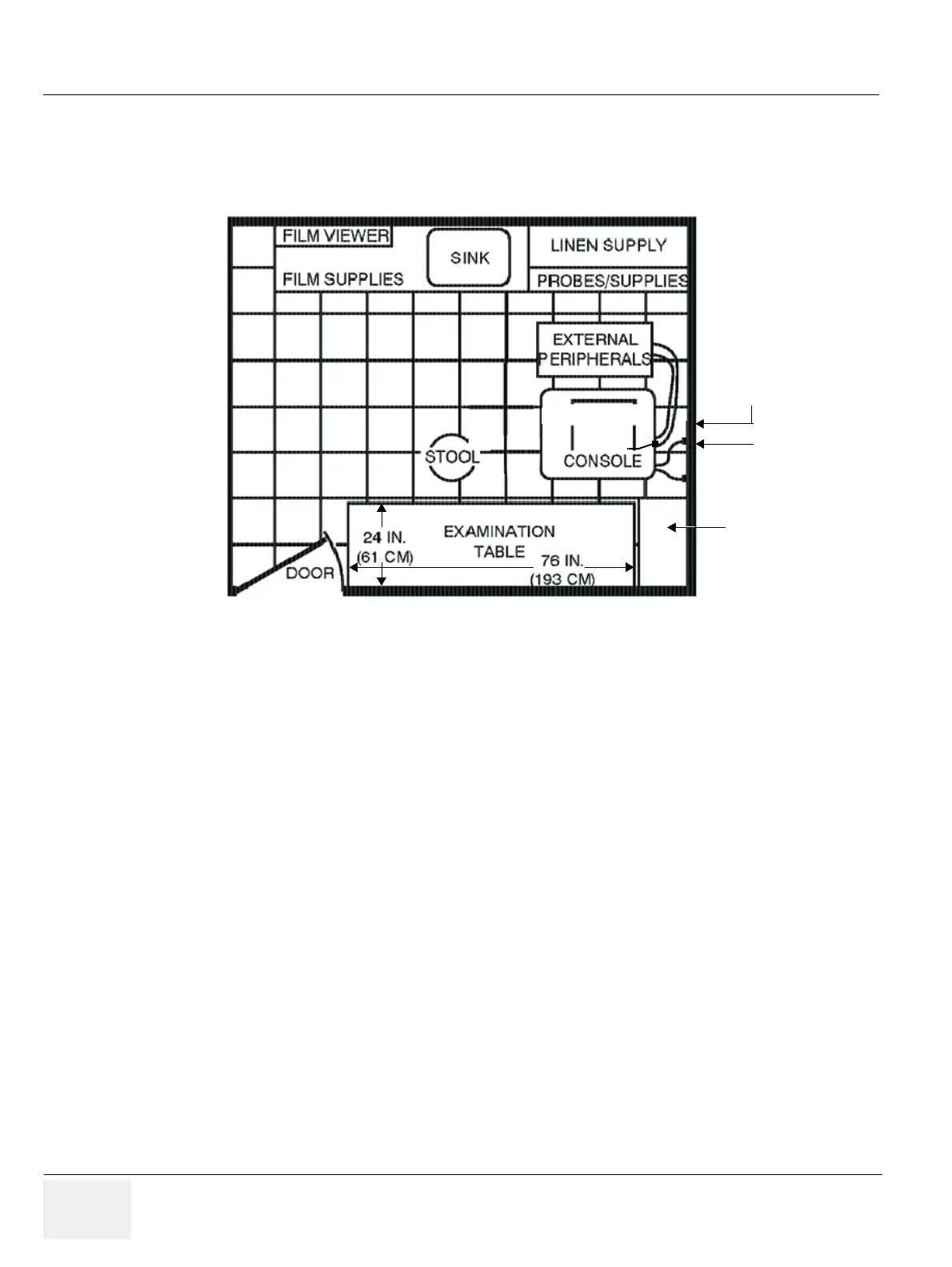 Figure 2-1 below shows a floor plan illustrating the recommended layout of the Ultrasound Room and