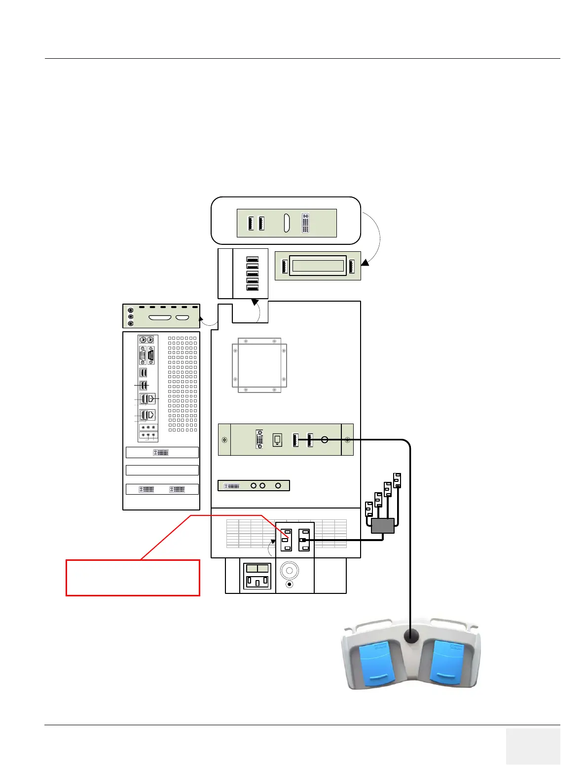 The footswitch should be directly connected to any accessible USB-port on the Voluson E8 / Voluson