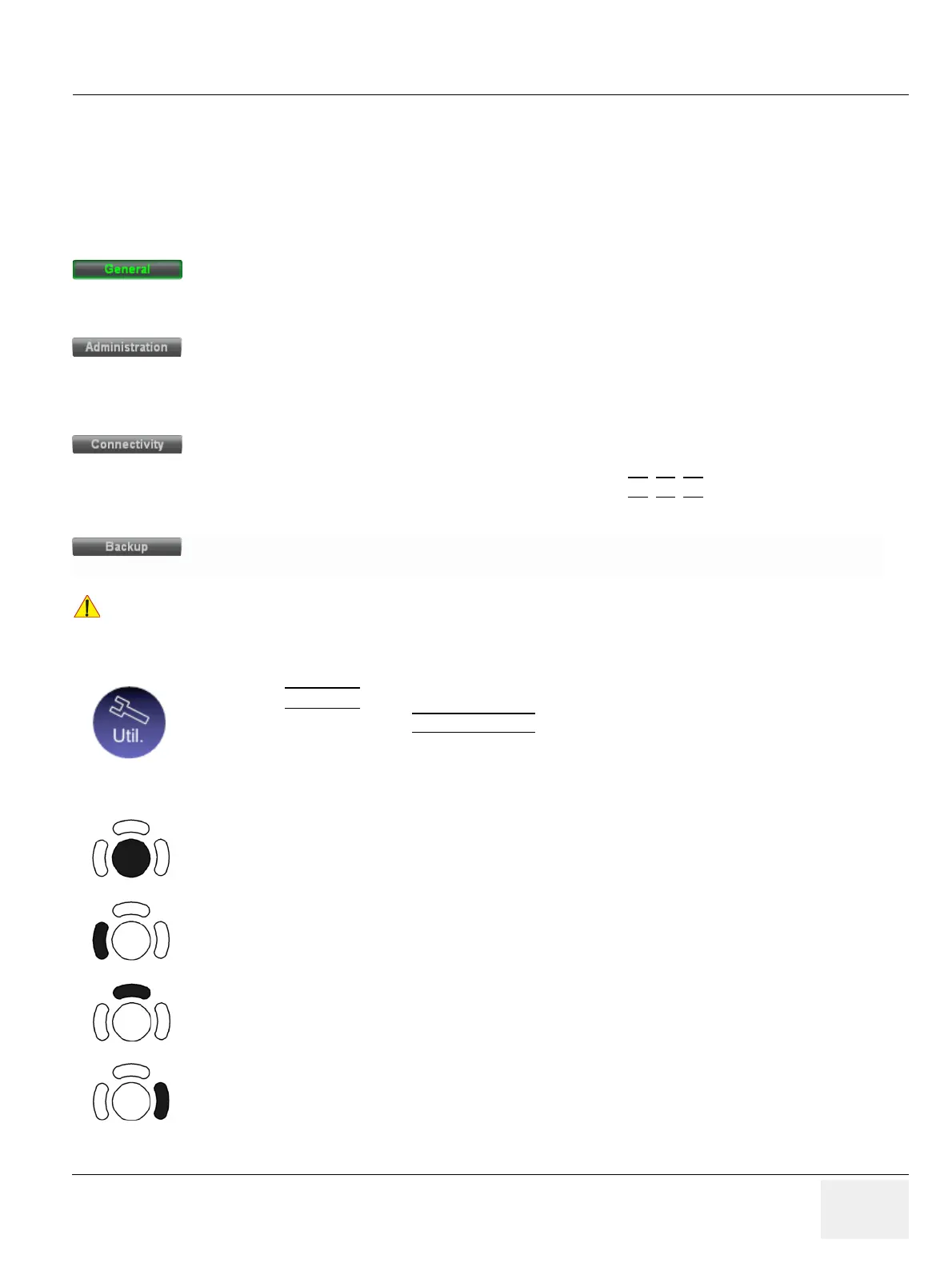 • Peripherals: Video Norm selection, Foot switch assignment, Add Printer, Edit Printer settings, etc.