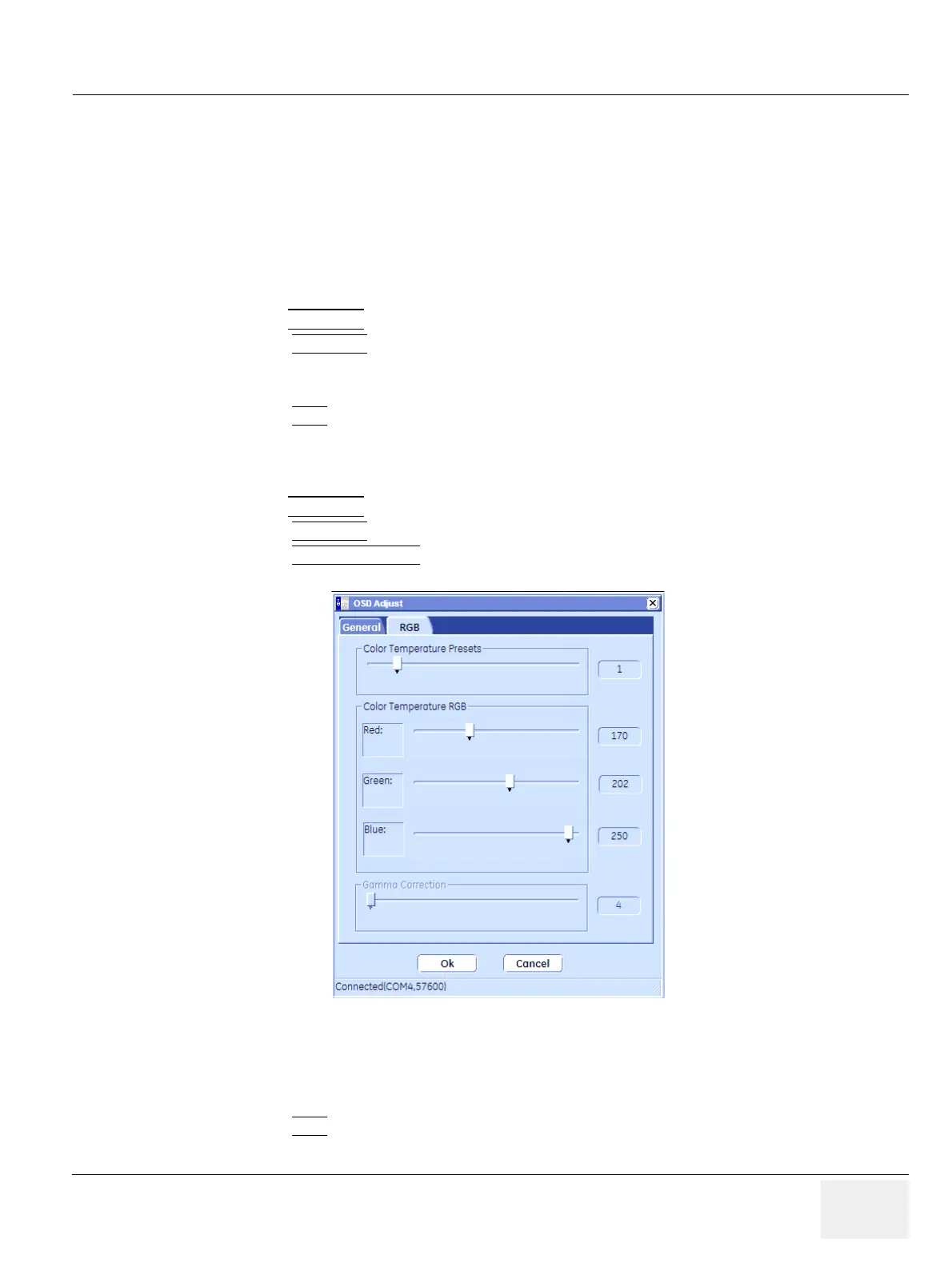 Figure 6-3 OSD Adjust - General (e.g., MDM100 at BT12)