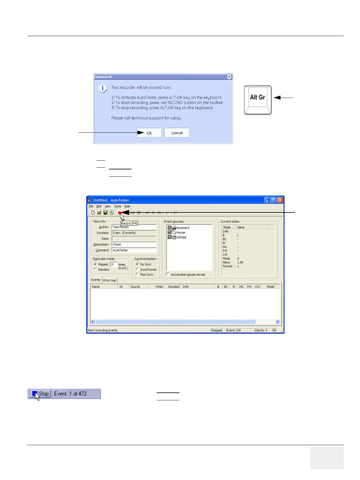 8.) Activate the “Auto Tester” program by clicking the “Record” icon on the displayed screen.
