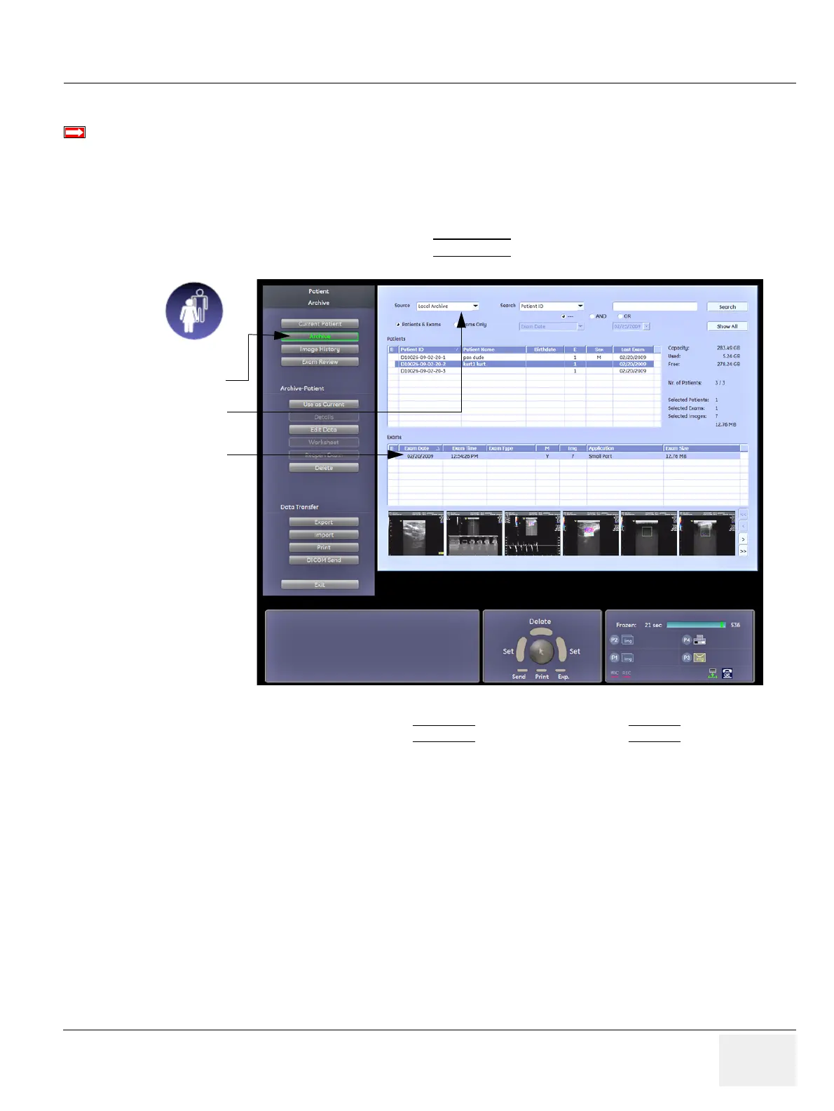 Figure 7-29 Patient Archive - ARCHIVE