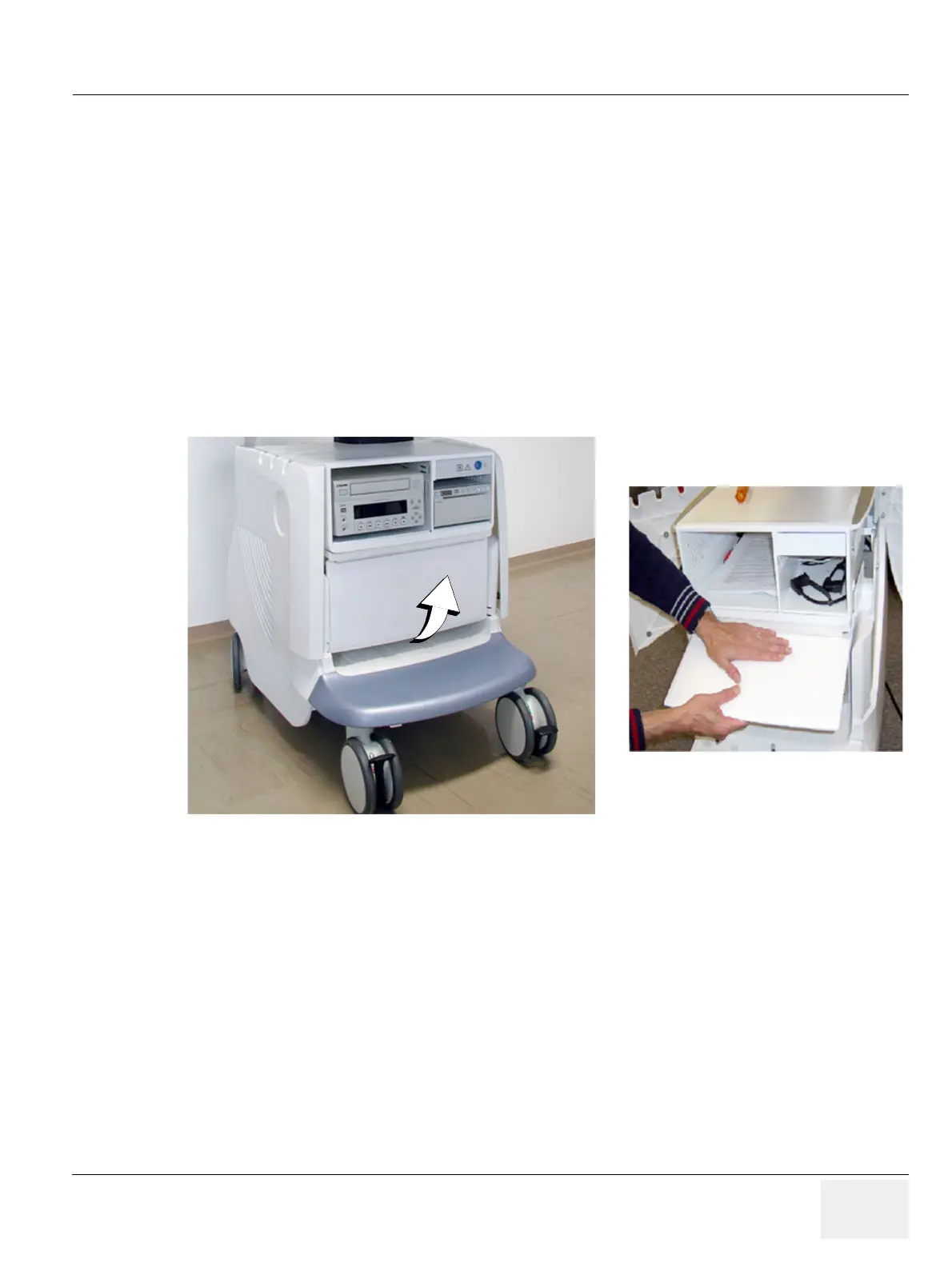 1.) Gently flap the Voluson cover upwards and then pull it away.