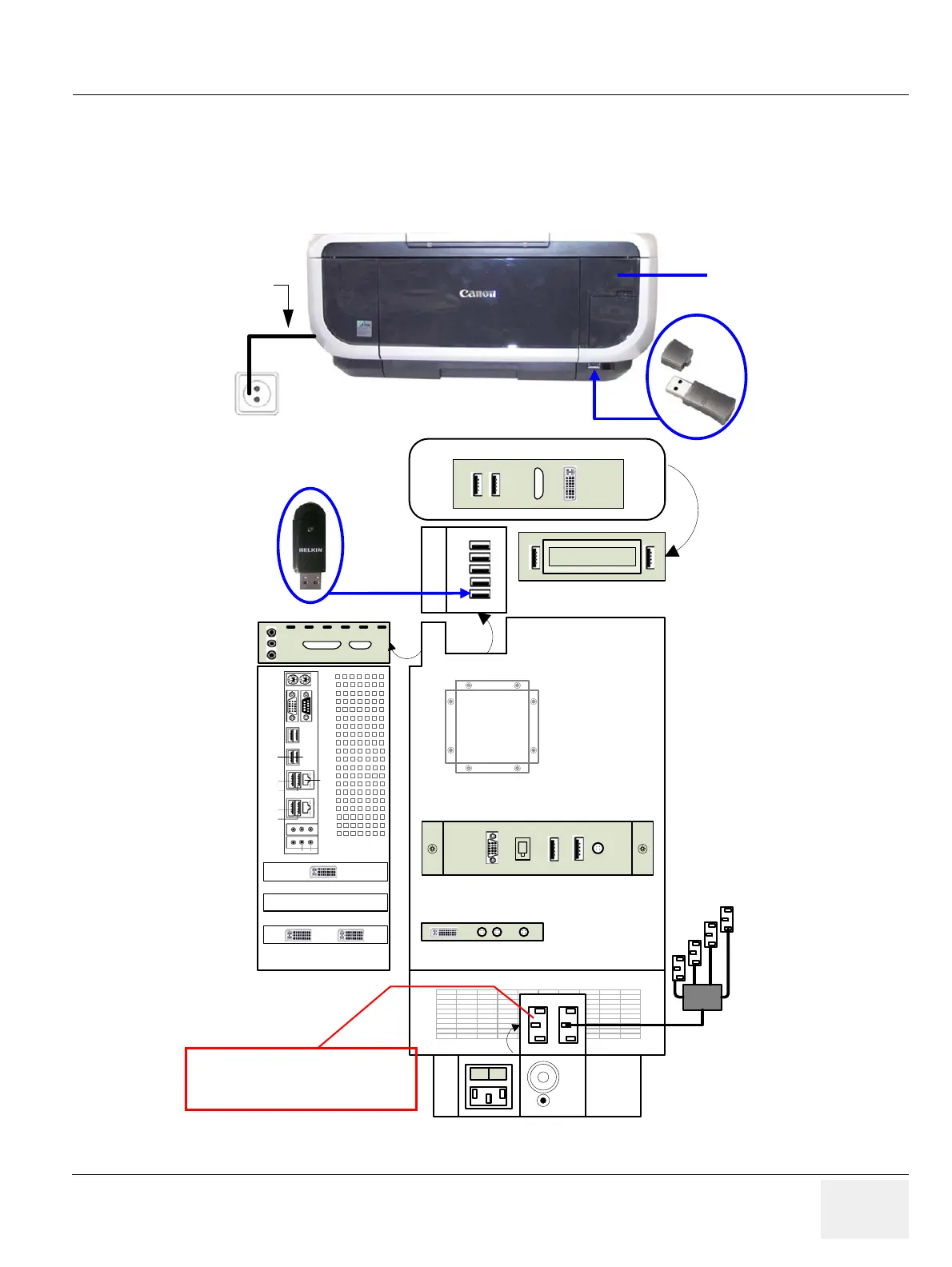 adapter should be directly connected to the indicated USB port E on the RTB Distribution Board Bottom.