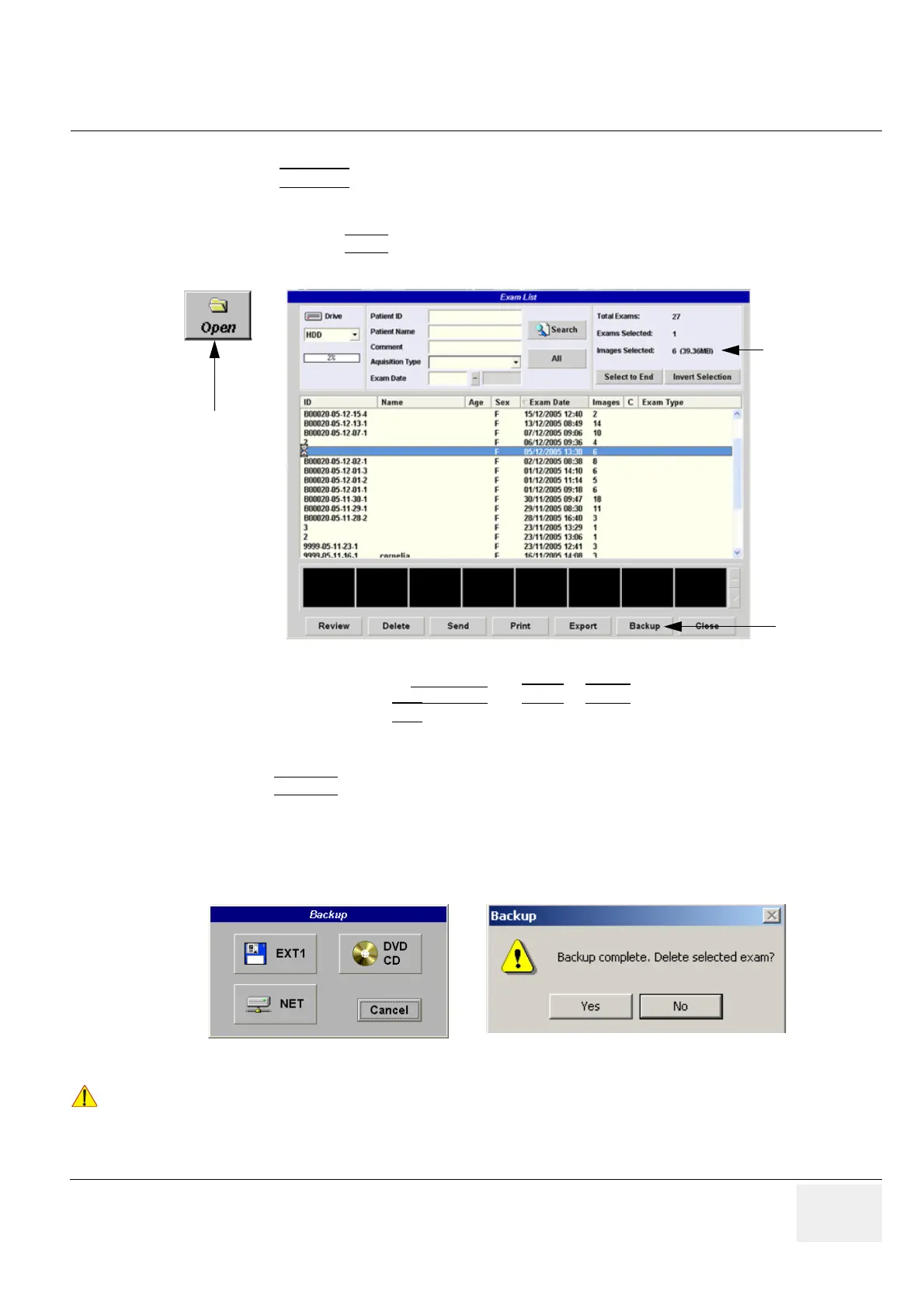 7.) After finishing the backup, select whether the selected exam(s) is to be deleted or not.