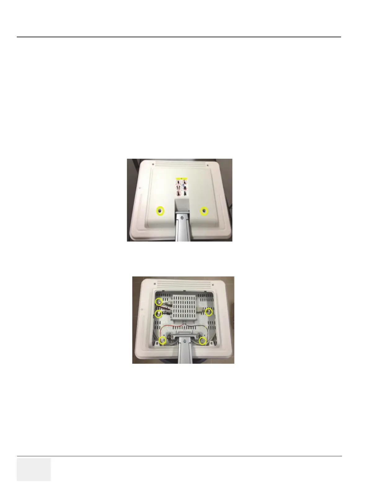 1.) Unscrew 2 screws to remove the MONITOR REAR CABINET BEZEL ASSY BT16. Refer to the