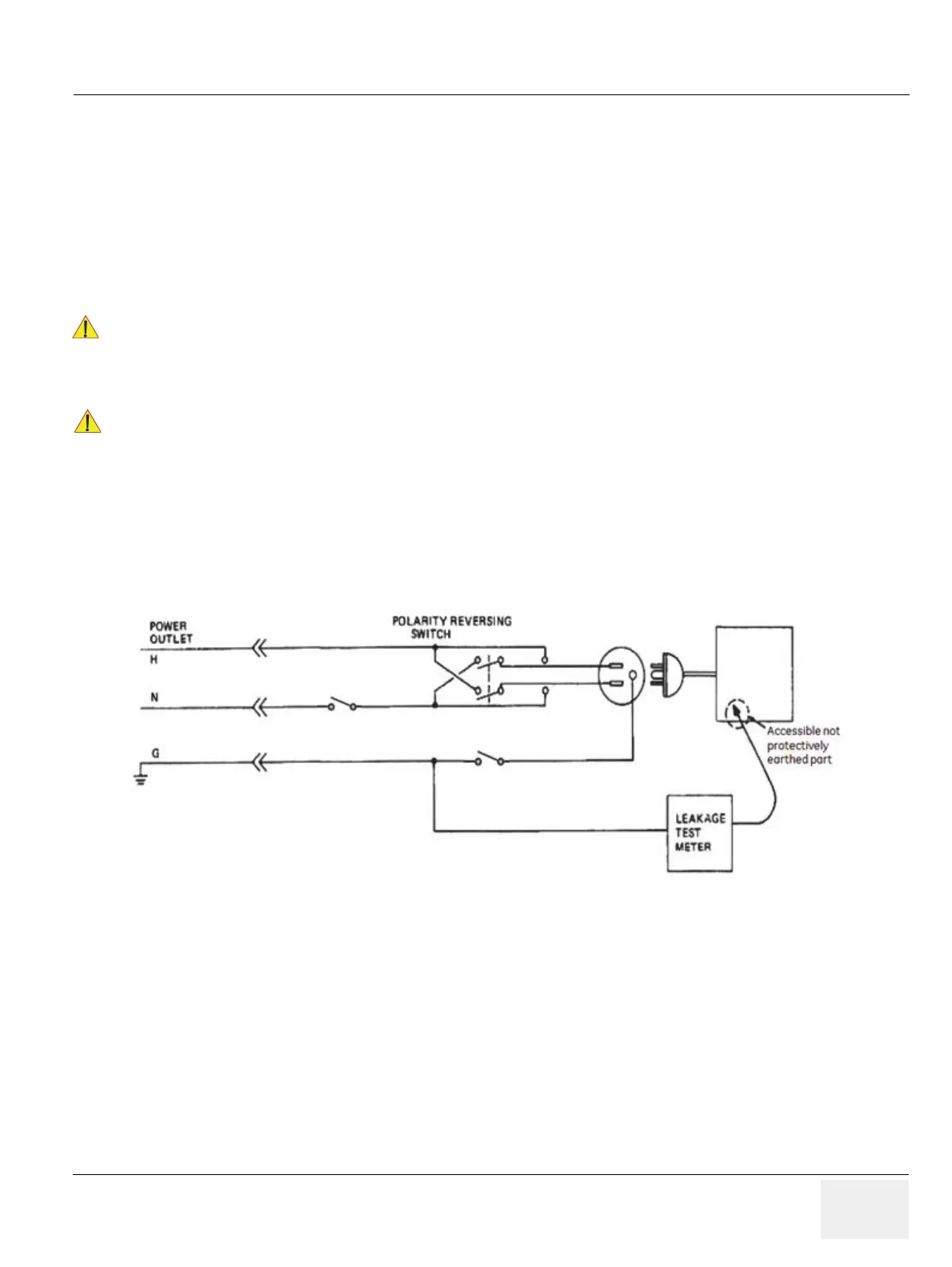 accessible non-protectively-earthed parts of the case to ground. Measurements should be made with
