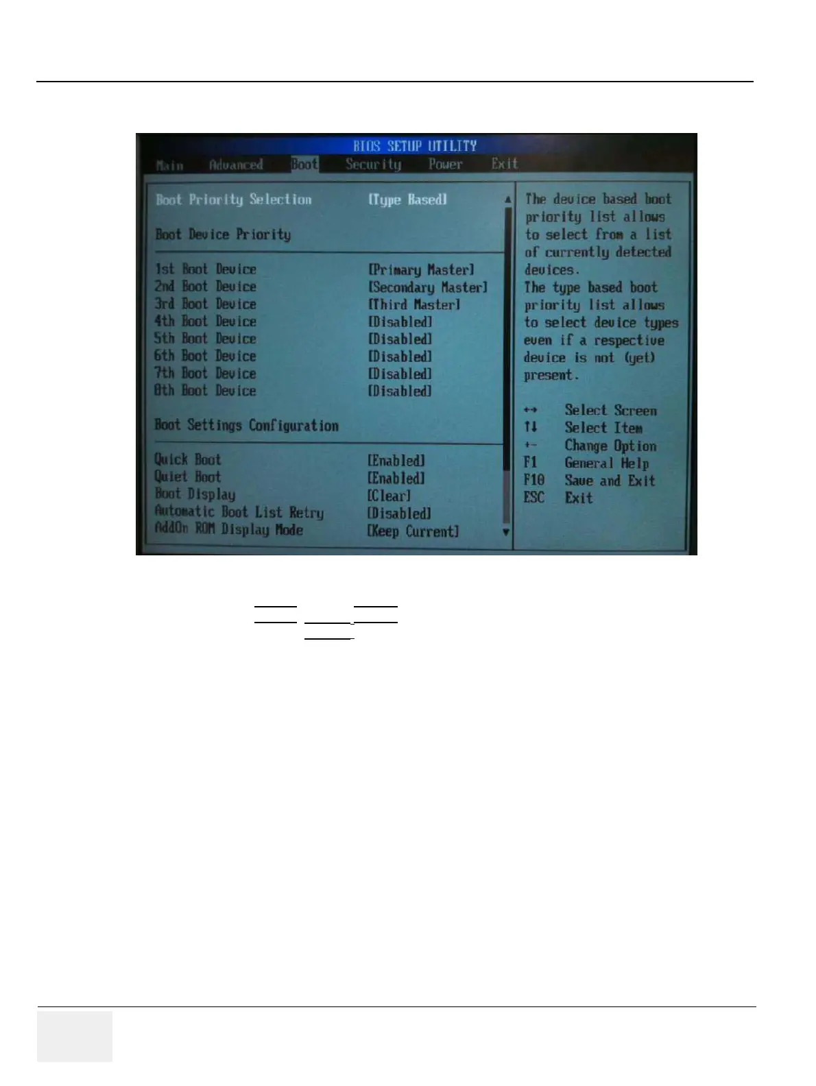 5.) Use “Arrow” keys [left] or [right] on the alphanumeric keyboard to select the [Boot] tab.
