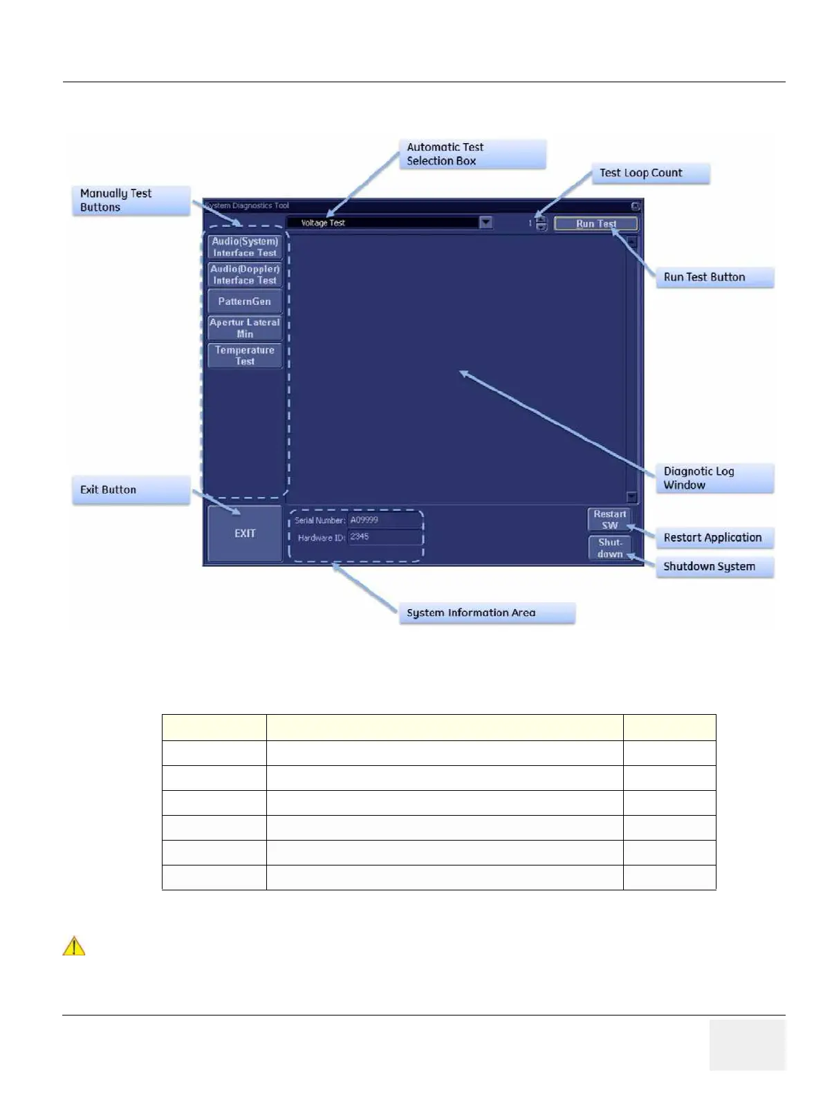 Table 7-1 below outlines Voluson® P8 / Voluson® P6 Diagnostics Tool described in the sub-sections.