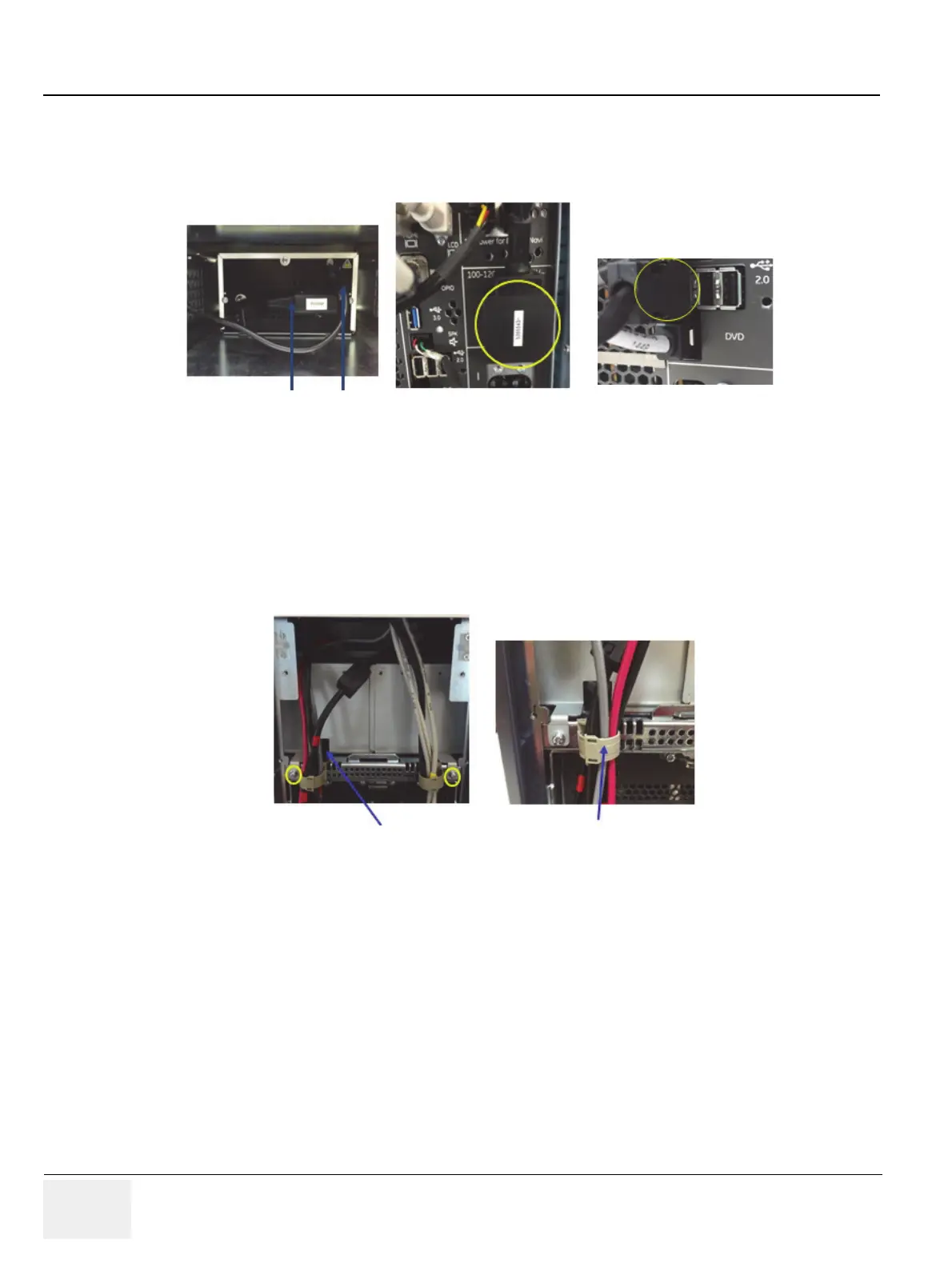 20.)Route the B/W printer USB and power cable through the left side cable clamp.