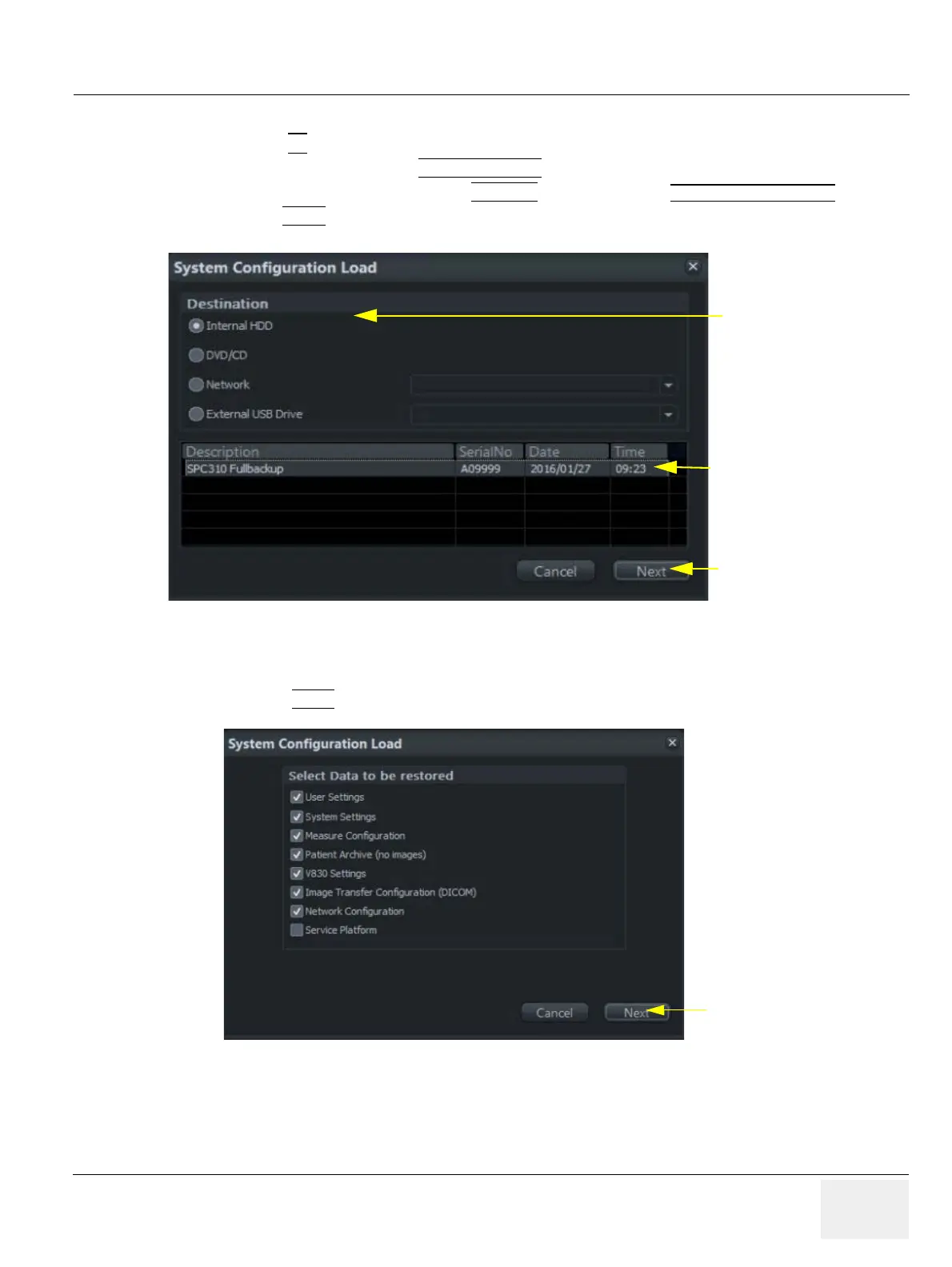 8.) Select the data to be restored to the Voluson™ P8 / Voluson™ P6 system.