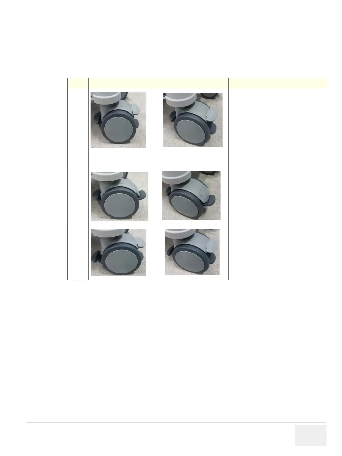 Table 4-9 Brakes and Direction (Swivel) Lock
