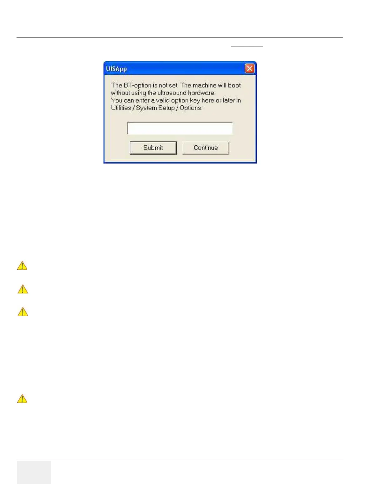 8.) If following message appears, skip the “BT warning” with CONTINUE.