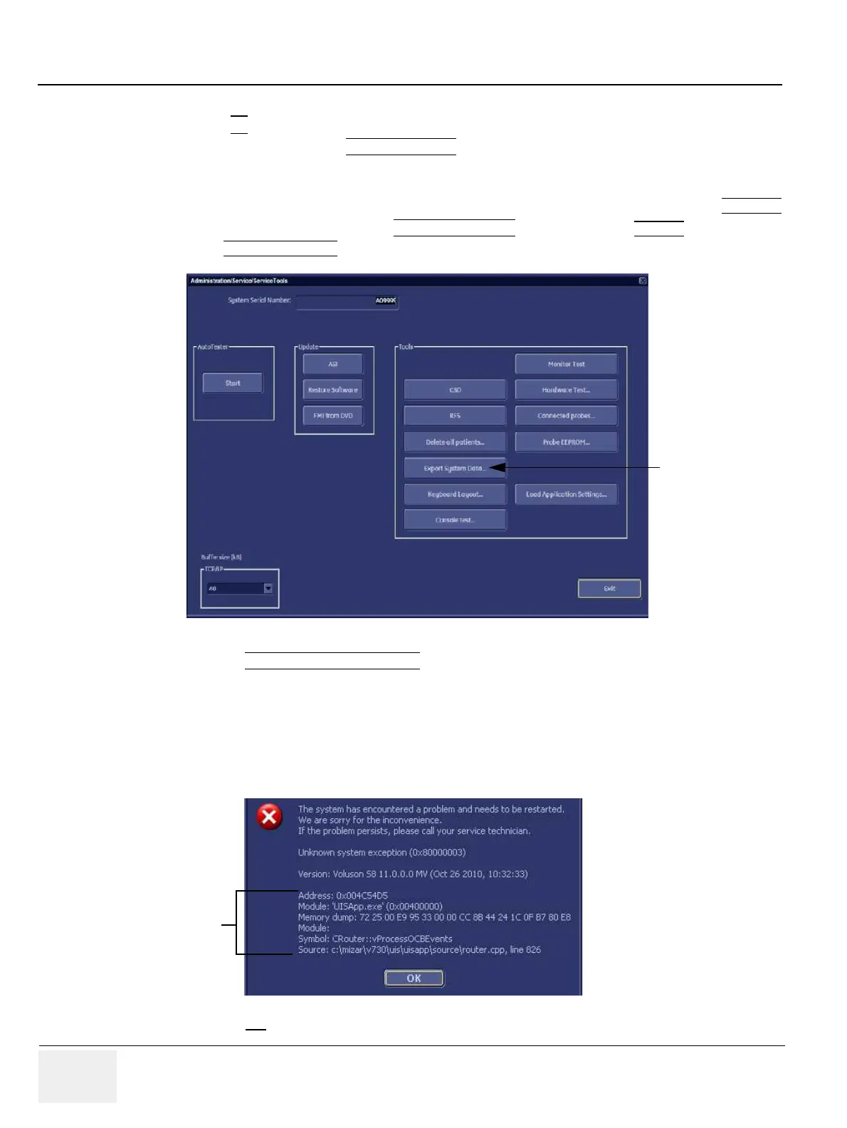 GE Voluson P8 - 7-4-2-2 Export Log´s and System Data (via Service Page)