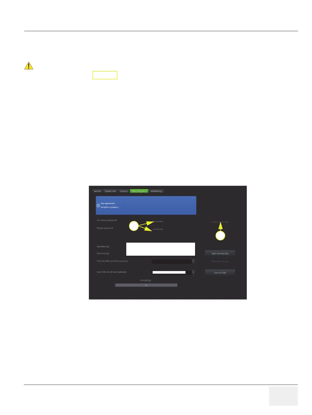 Disk Encryption enables an encryption to secure all Patient Data, Patient Images and corresponding