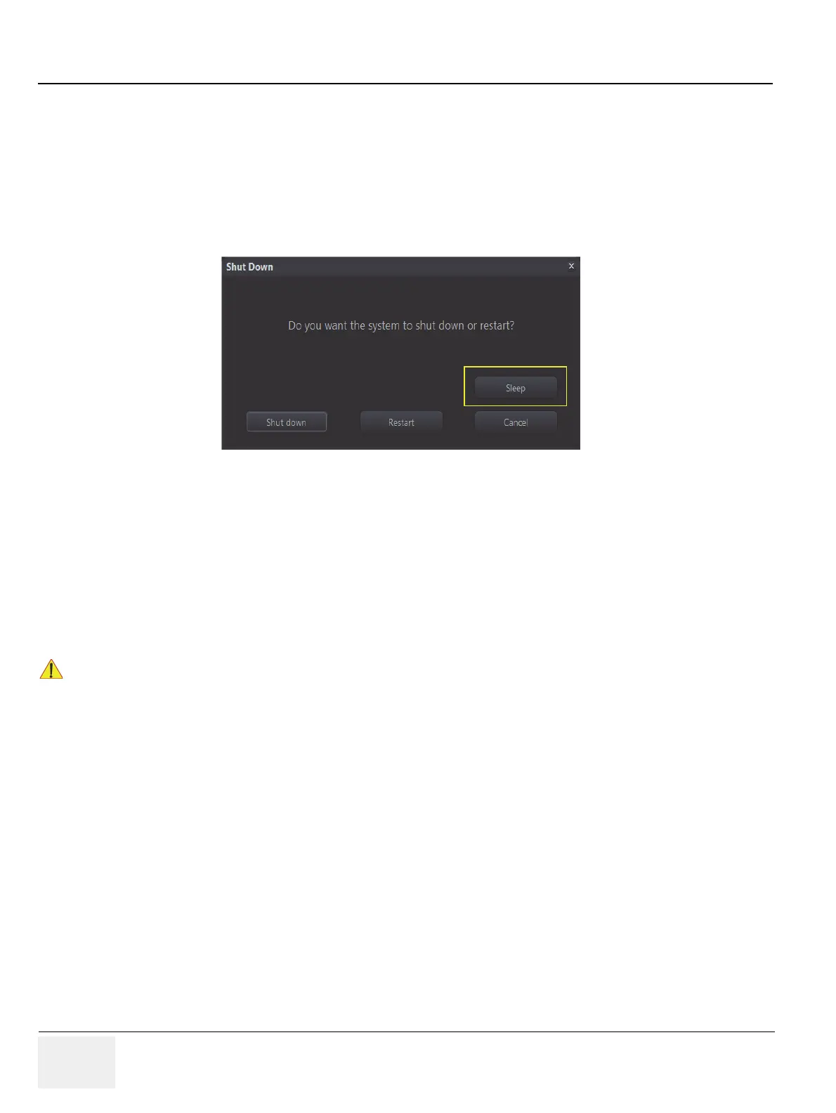 Sleep mode is available when B mode button and the probe selection menu are available.
