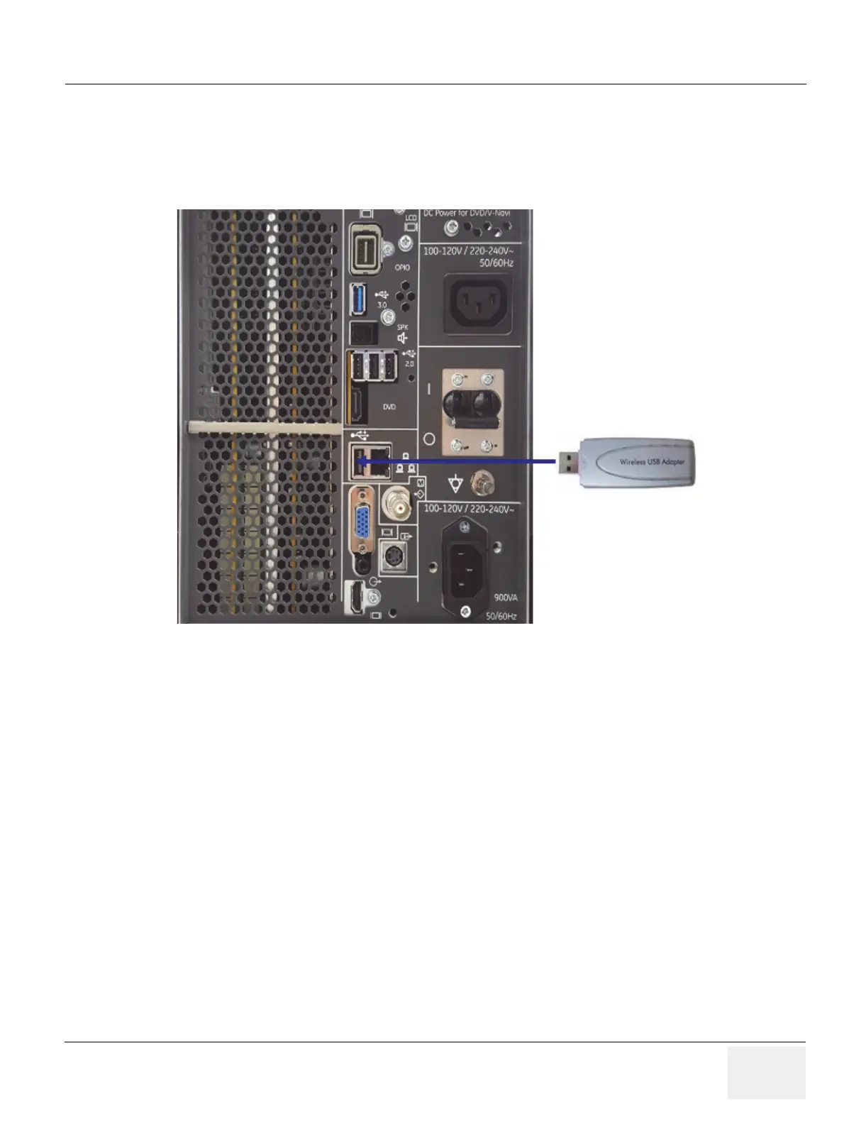 2.) Plug the Wireless Network adapter into an accessible USB port of the Voluson™ P8/Voluson™P6.