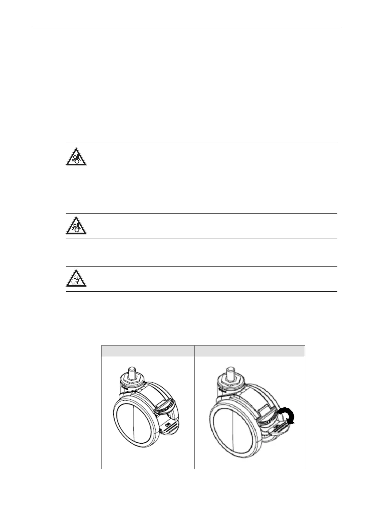 Top position: caster brake pulled Lower position: caster freely movable