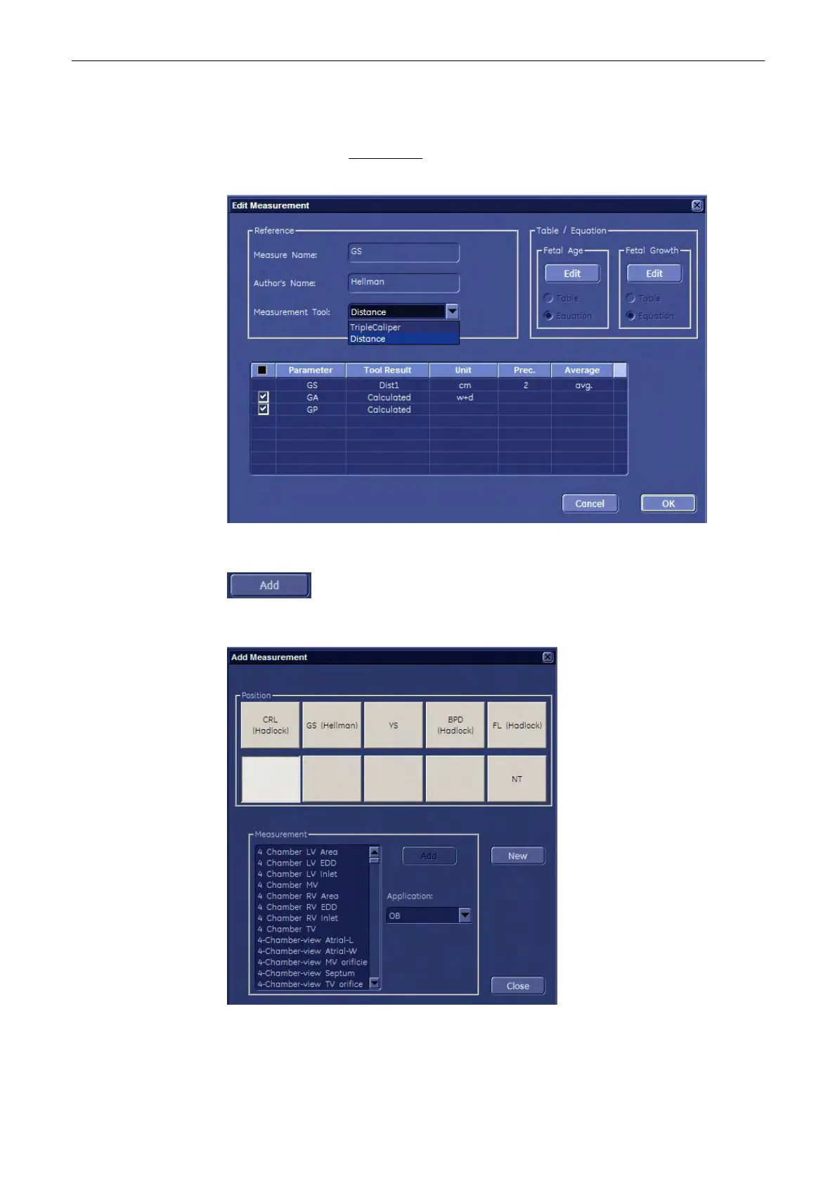 want to add an entry. For example: Biometry - 2D/3D - Early Gest. - Measure (= column where