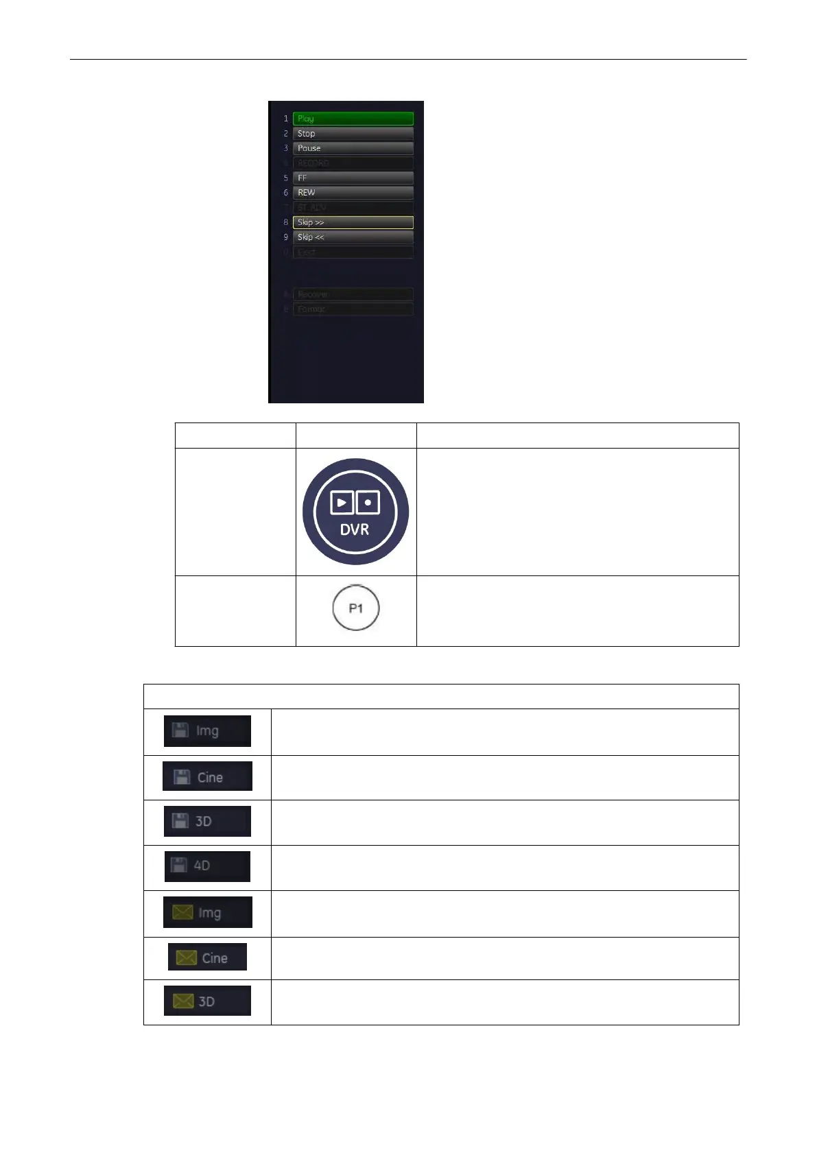 DVR button At the first push: The DVR menu appears.