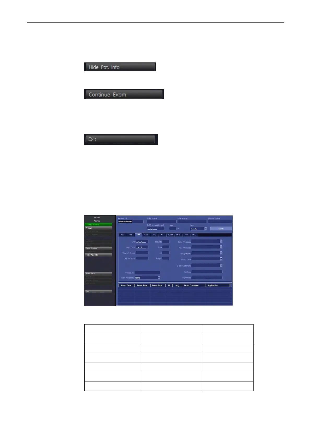 Continue Exam:Starts an exam with the current patient. The patient information is temporarily