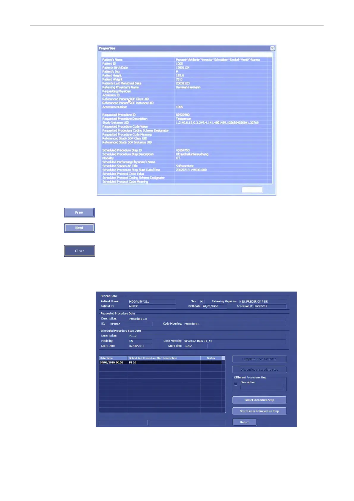 The procedure step dialog lists all procedure steps belonging to the selected procedure. The