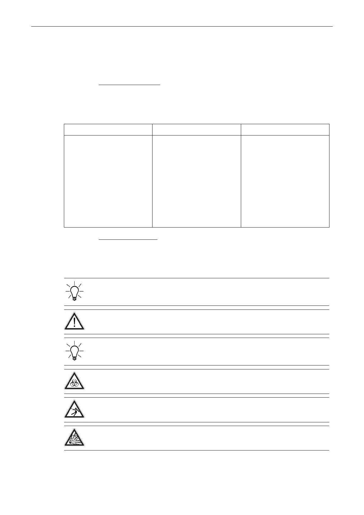 Describes precautions necessary to prevent the risk of injury through explosion hazard!