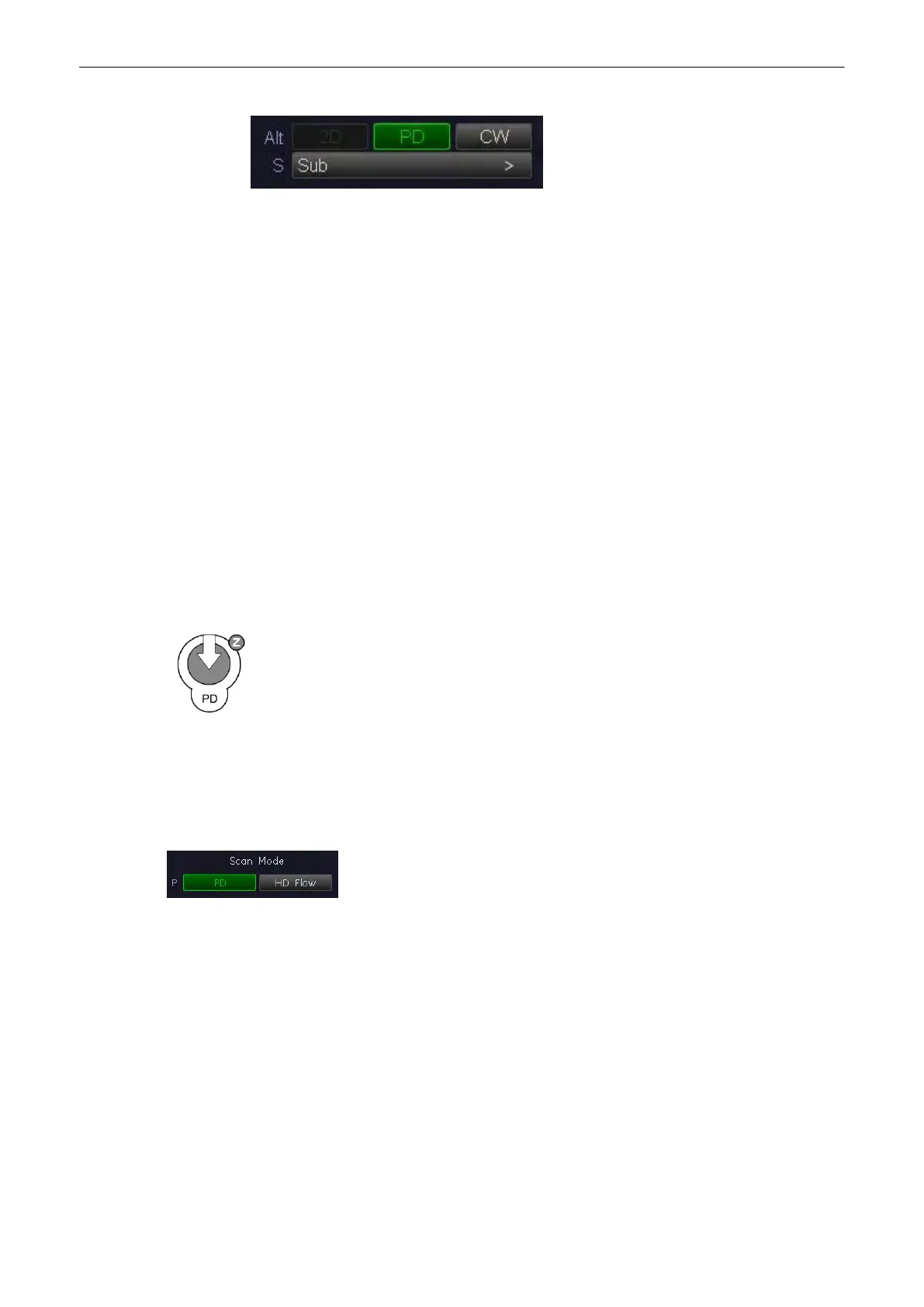 The [PD Mode] hard key is also the Gain control for the HD-Flow mode (in scan mode only).