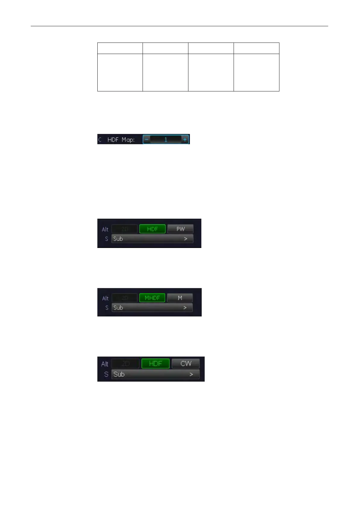 In scan mode it is possible to switch between HD-Flow menu, CW menu and the Submenus to