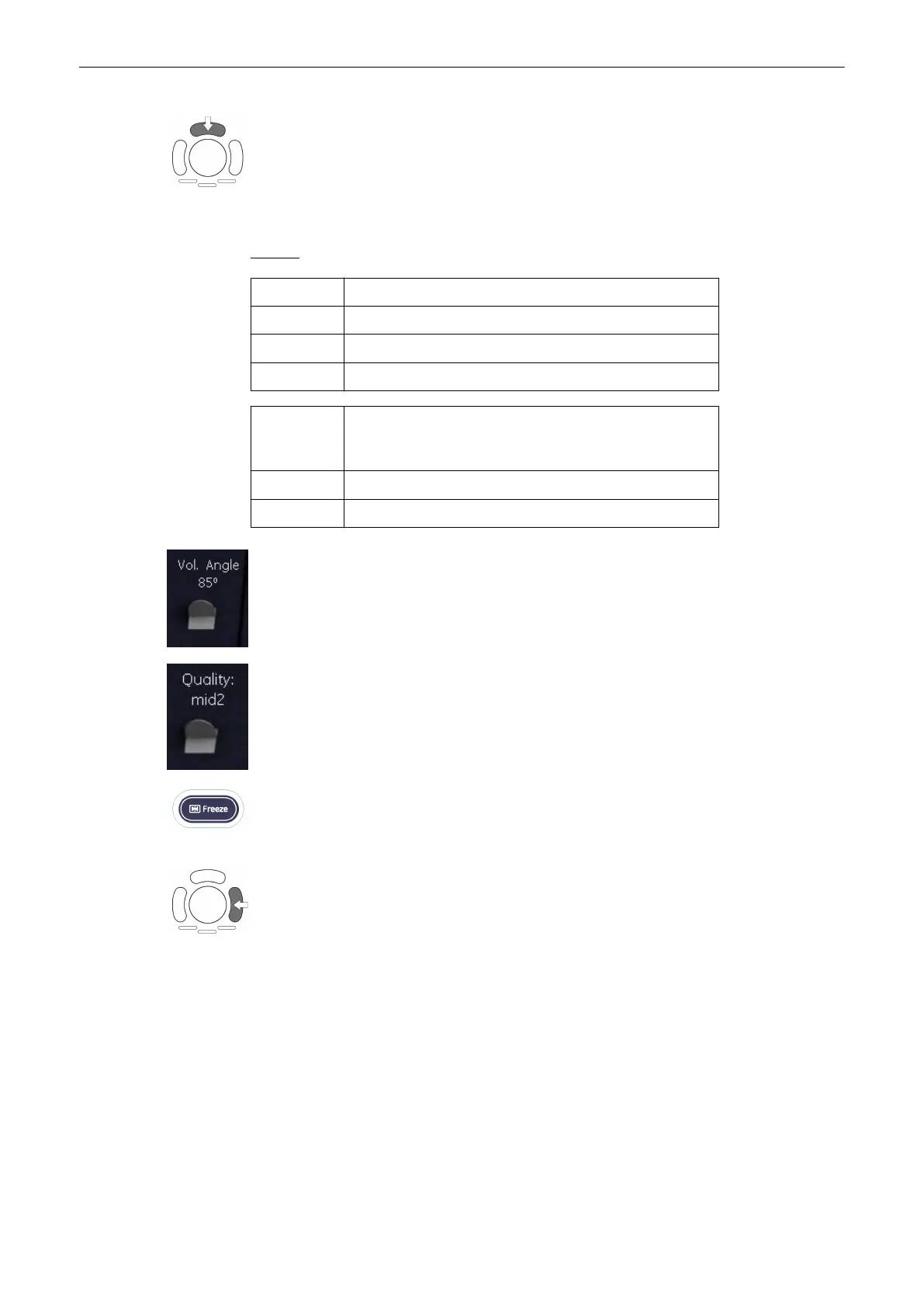 7. Set the volume sweep angle by using the right control below the menu area.