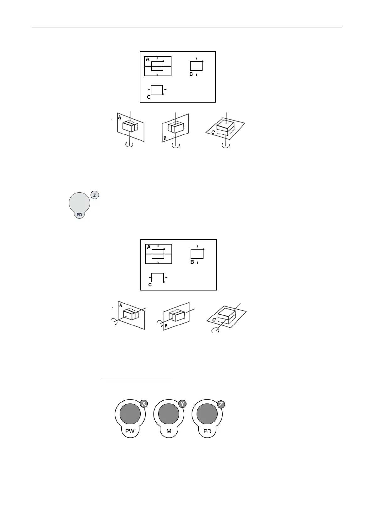 changed. At 90˚ rotation around an axis, the sections A, B, C will change: