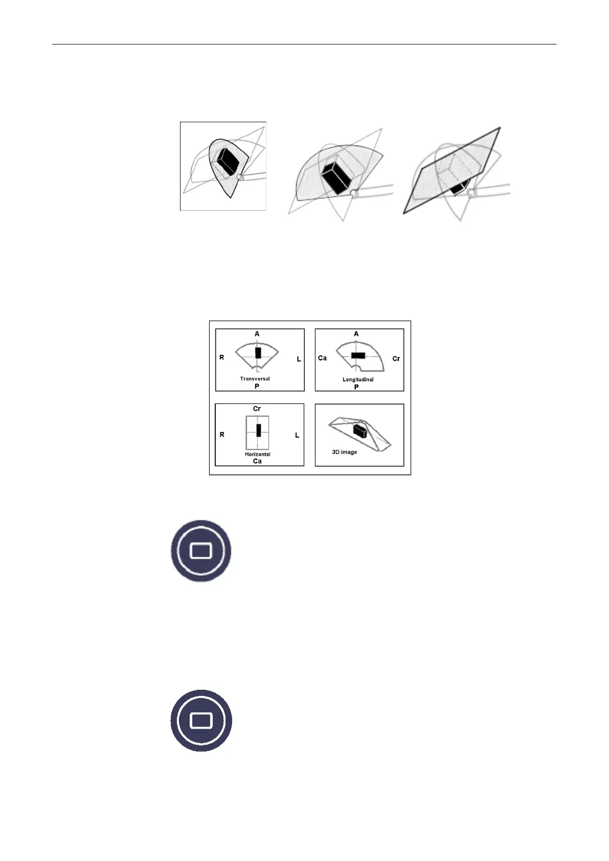 This display mode is active if you press the [Quad] screen format key. The 3 sectional planes