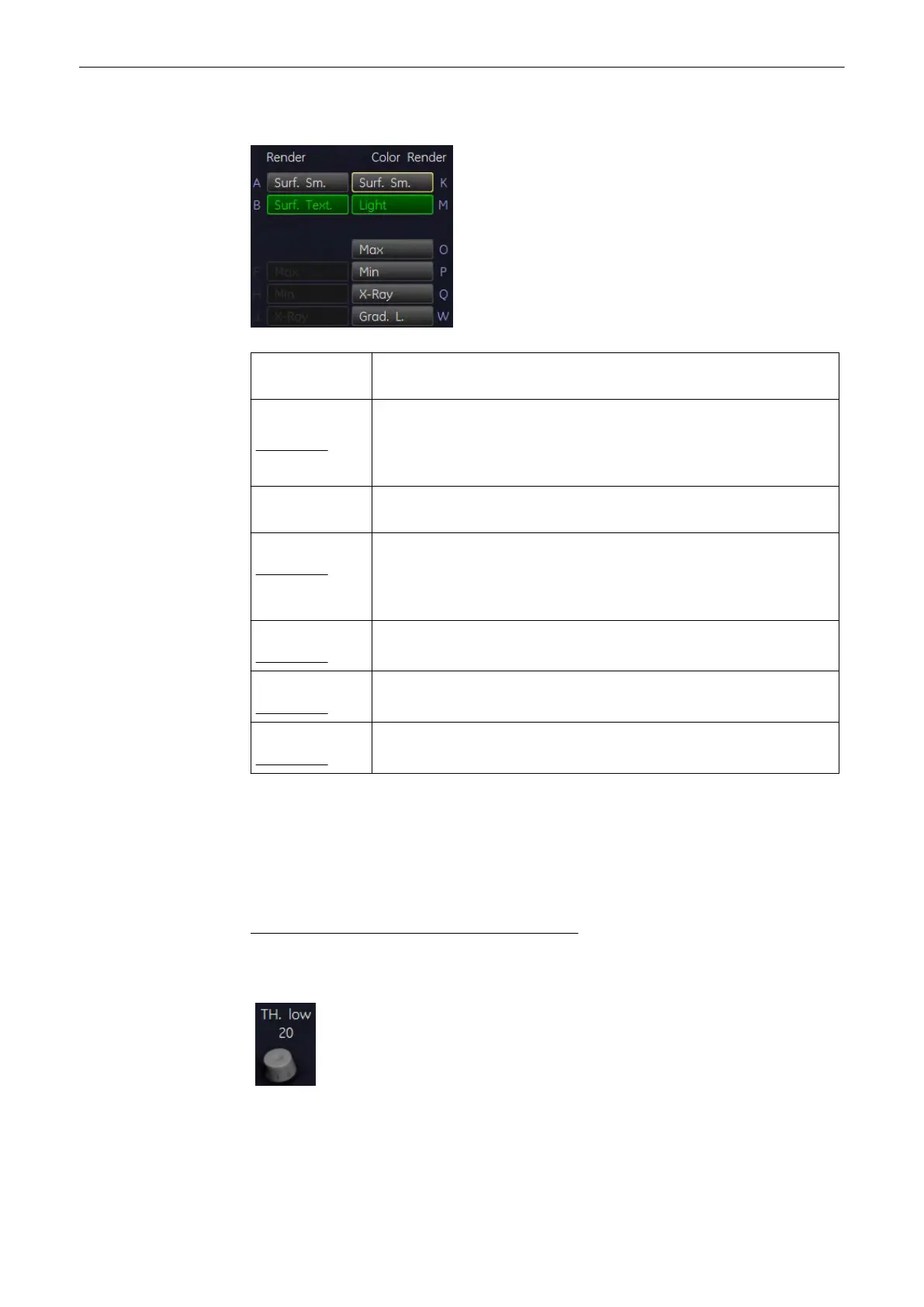 appearance of the 3D surface image. By changing the [TH.low] all echoes below the level are
