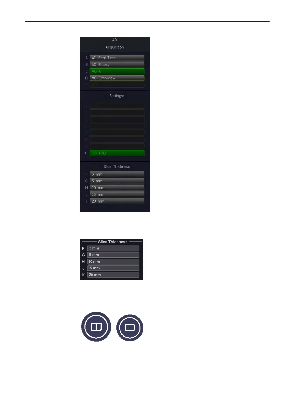 4. Select the “Slice Thickness” by selecting one of the keys on the menu area.