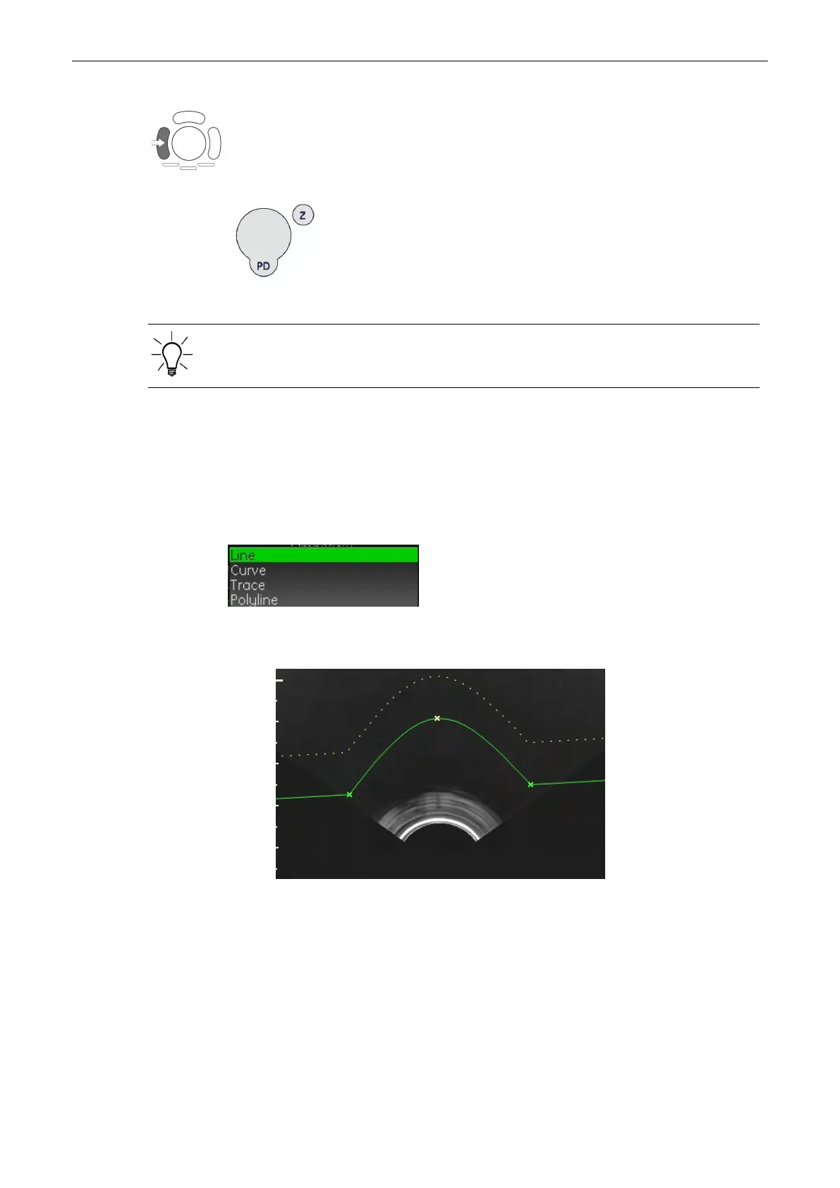 To adjust the VCI-Omni View Curvature Line press the [Omni View Curve Line] button on the