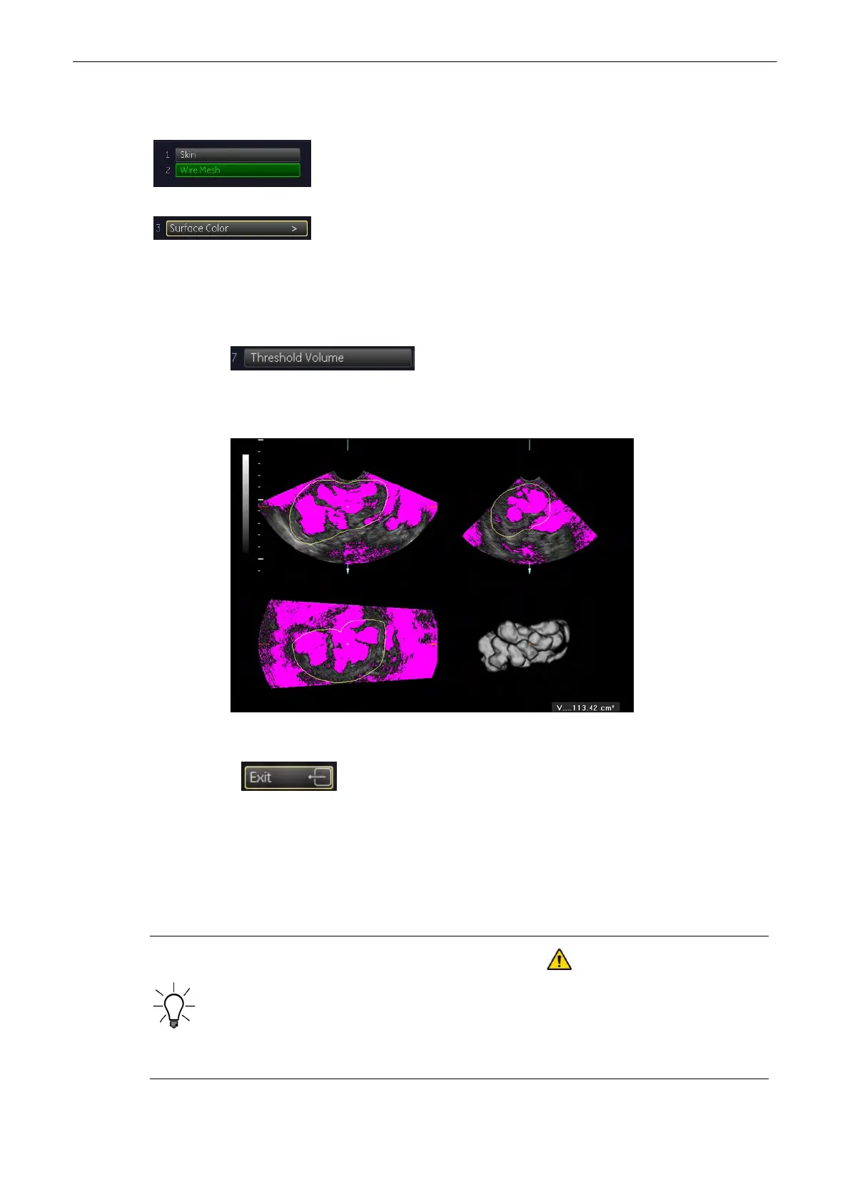The screen shows the calculated Threshold volume (according to the monitor display).