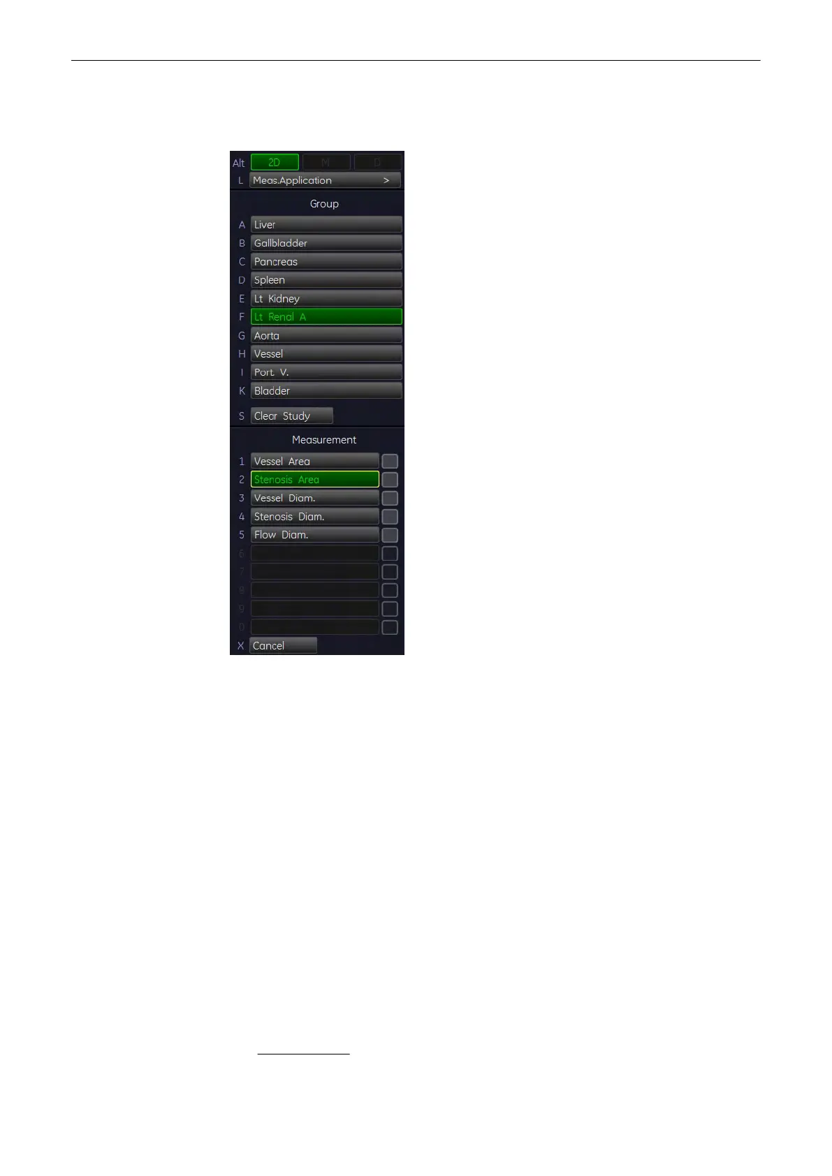 3. Select the appropriate measurement parameter [Stenosis Area] or [Stenosis Diameter].