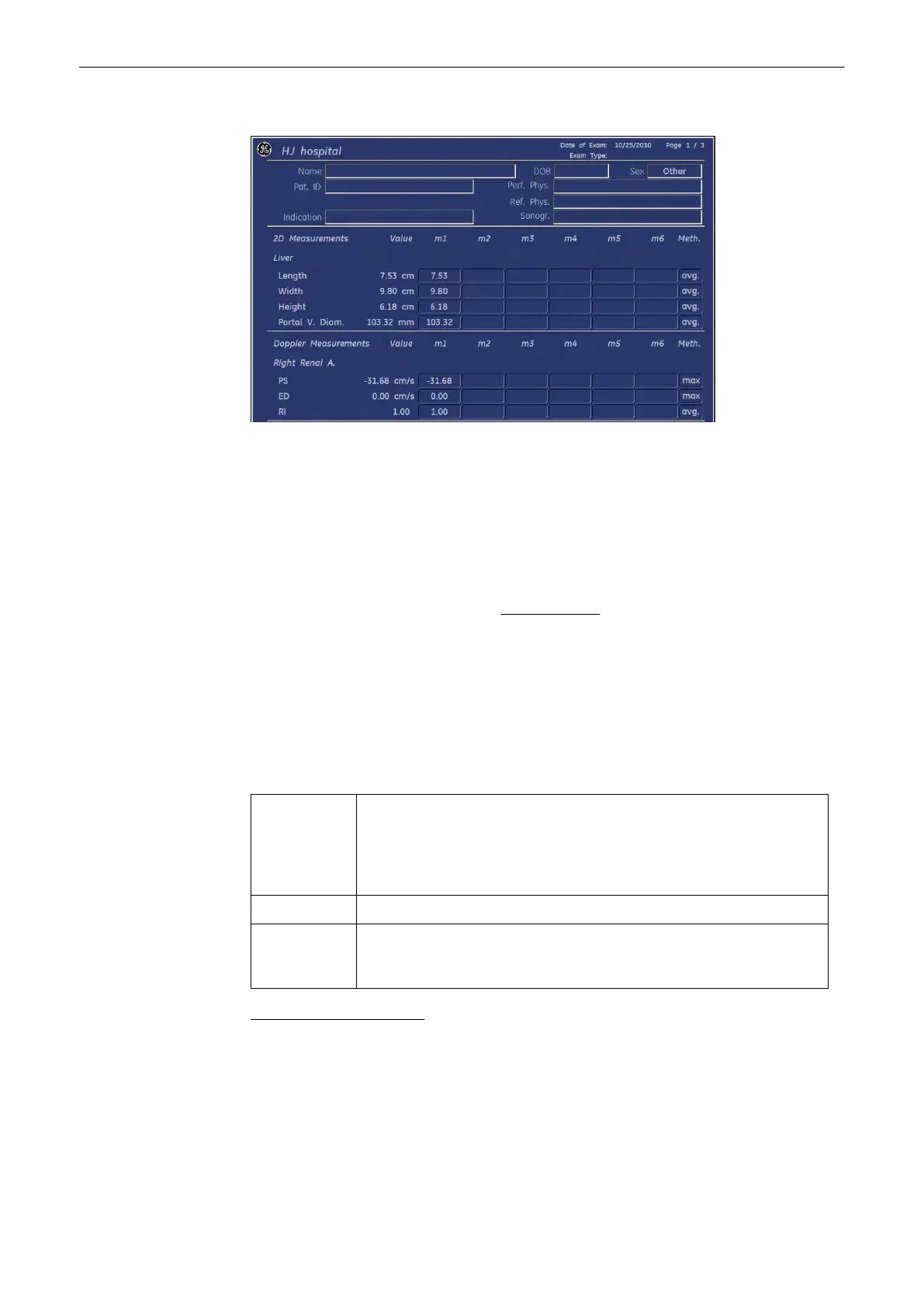 in 2D/3D mode, M mode and Spectral-Doppler mode, using various measure items. For details