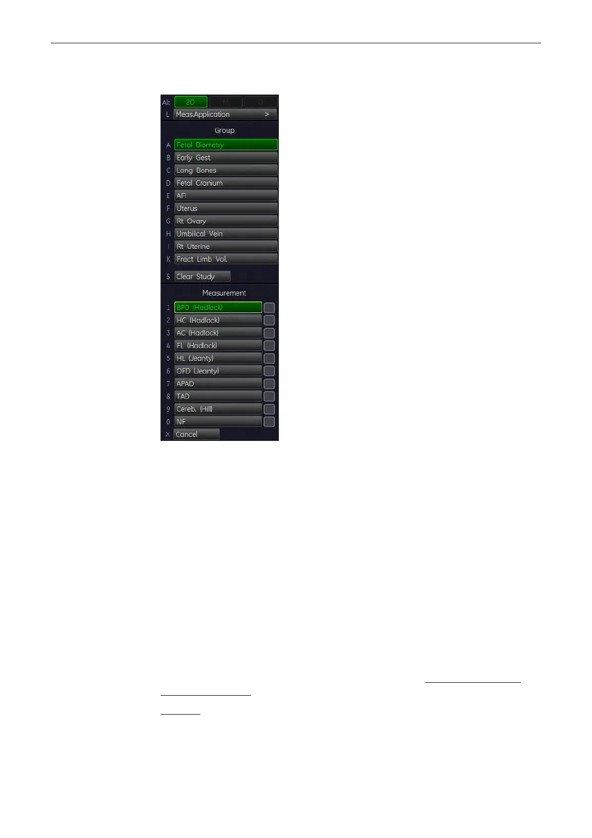 Select the study for the corresponding item. For example: select [Fetal Biometry].