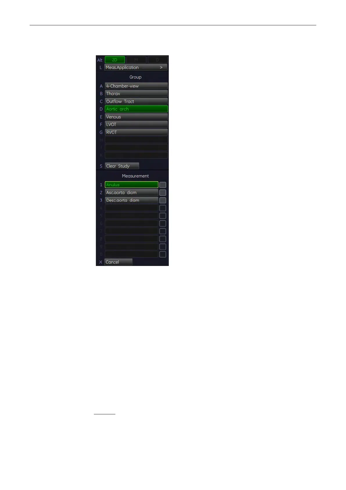 5. Select the desired measurement parameter. For example: select [Anulus].