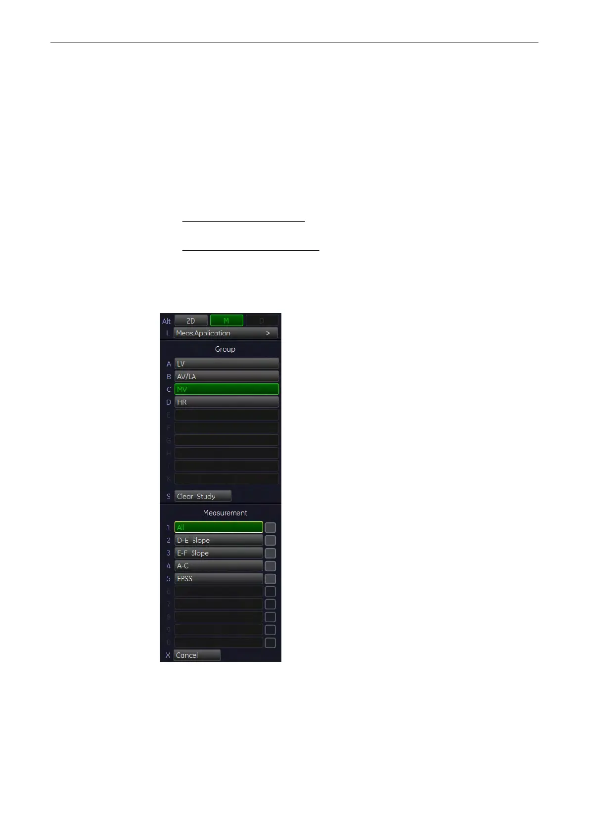 To calculate all the items of the Mitral Valve in M mode at a time: