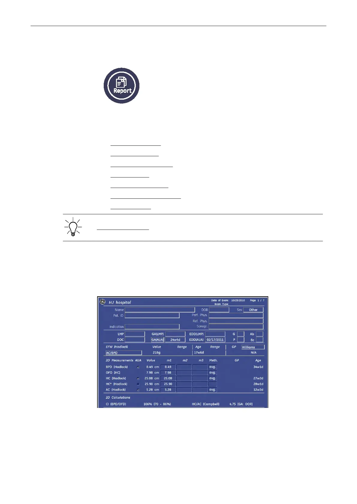 Measurements and Patient Worksheets (Reports)