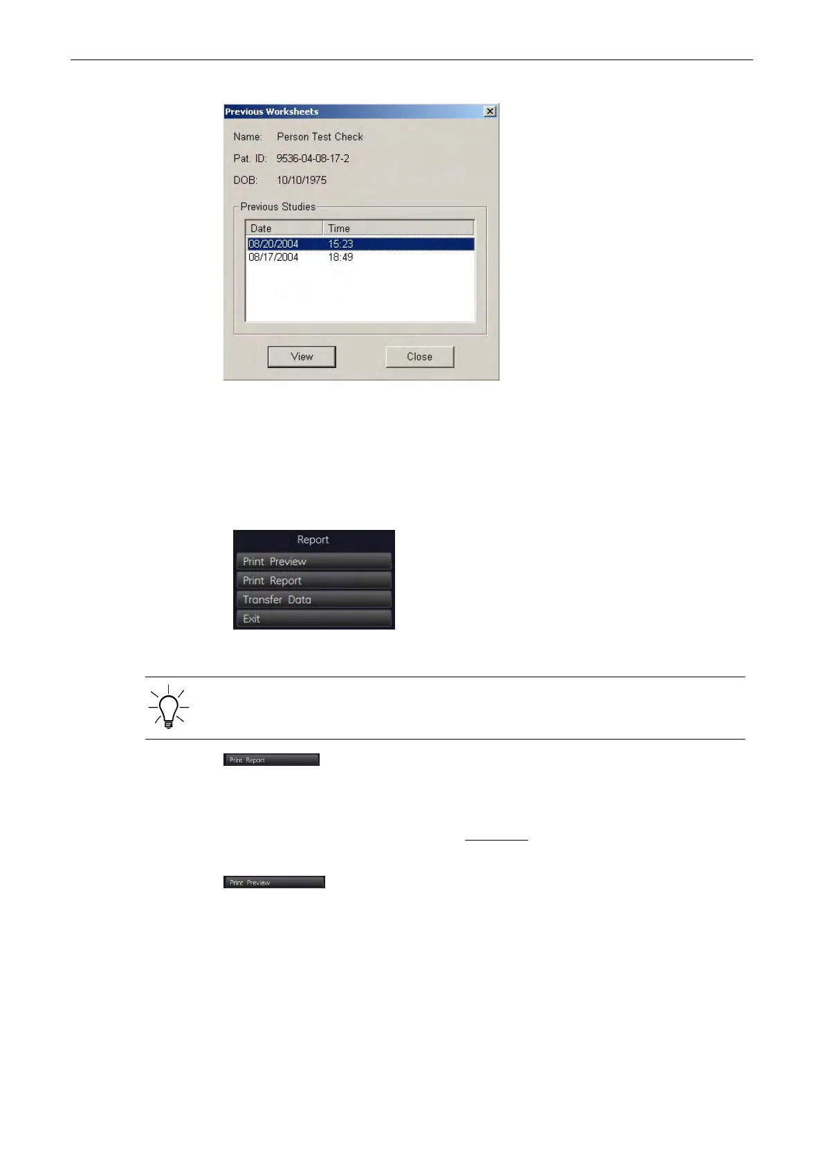 2. Print the patient report of the currently selected Measurement Application on the Report