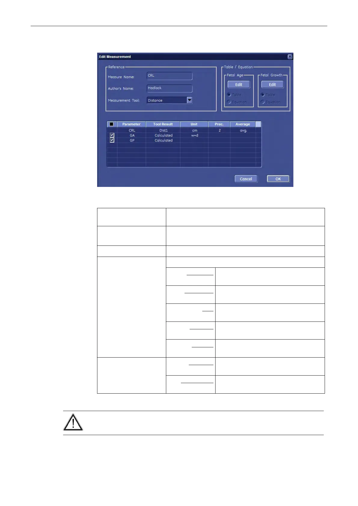 Table / Equation: Fetal Age: select either Table or Equation and then